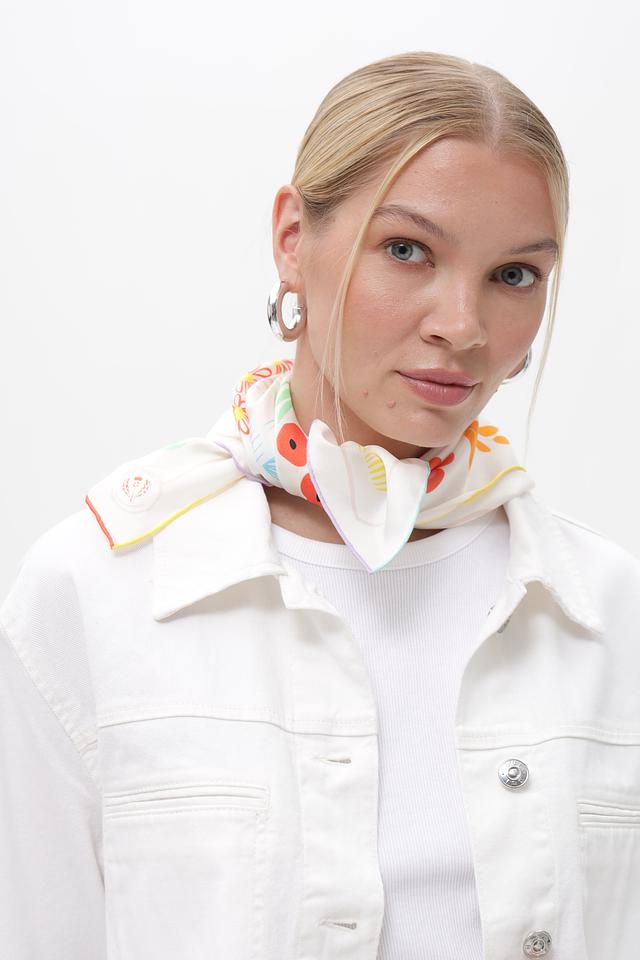 Белый платок Fraas из 100% шелка с ярким цветочным принтом станет стильным дополнением к вашему образу. Изделие отличается мягкой текстурой и высоким качеством материала. Состав: шелк 100%
