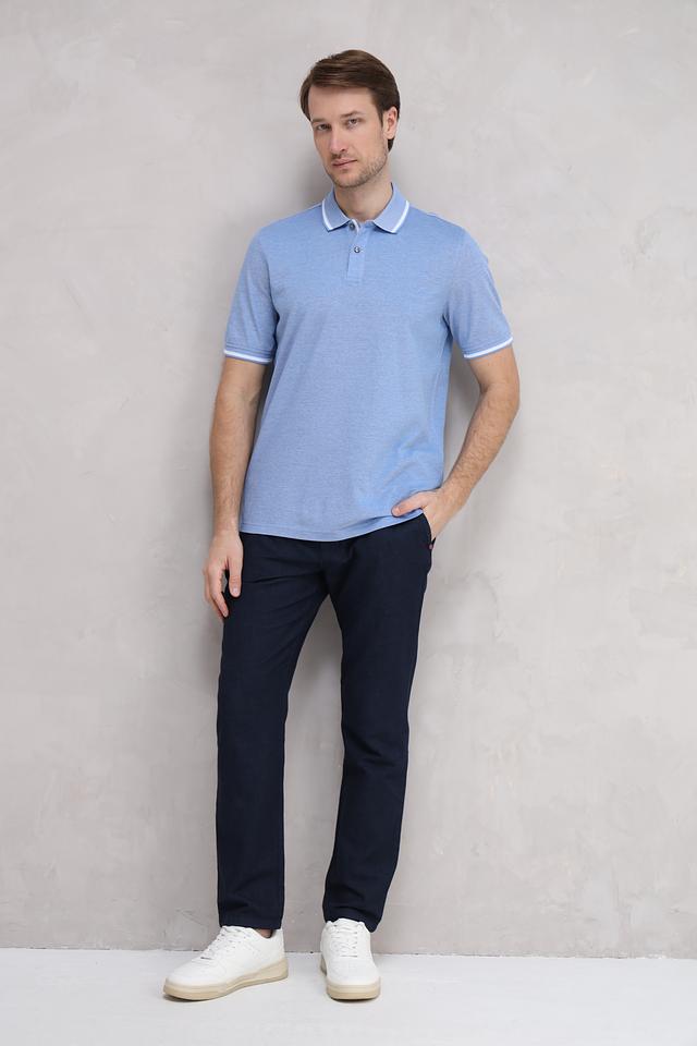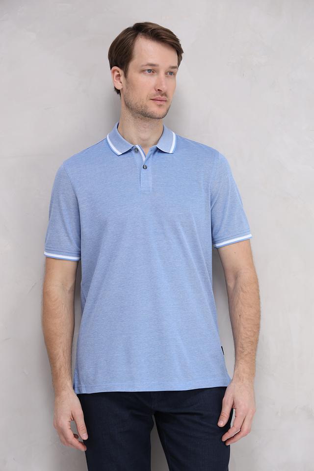 Мужское поло Bugatti голубого цвета с белой отделкой на воротнике и рукавах. Изготовлено из 100% хлопка, обеспечивающего комфорт и воздухопроницаемость. Стильный и универсальный вариант для повседневного образа. Состав: хлопок 100%