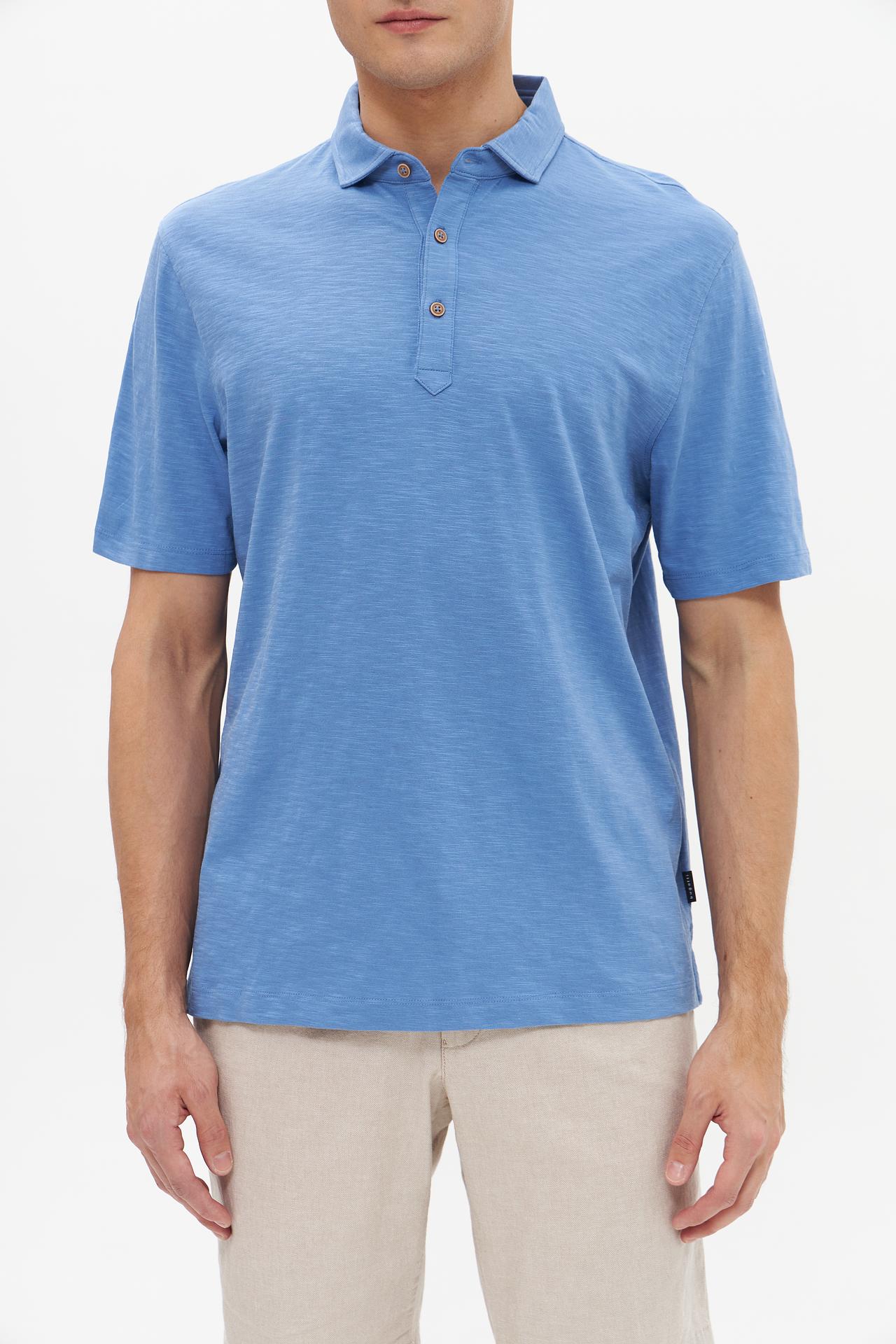 Поло Bugatti голубое, мужское, из хлопка, с деревянными пуговицами