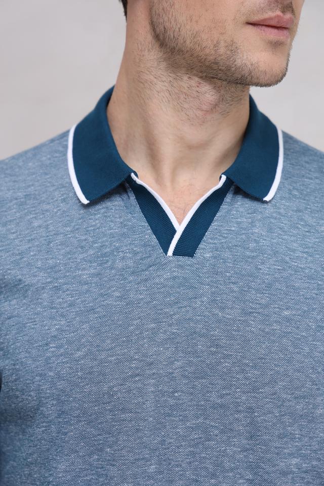 Мужское поло от Bugatti выполнено в приятном голубом цвете с добавлением меланжевой текстуры. Модель отличается контрастной отделкой воротника и коротких рукавов, выполненной в тёмно-синем и белом цветах, что придает ей особый стиль.