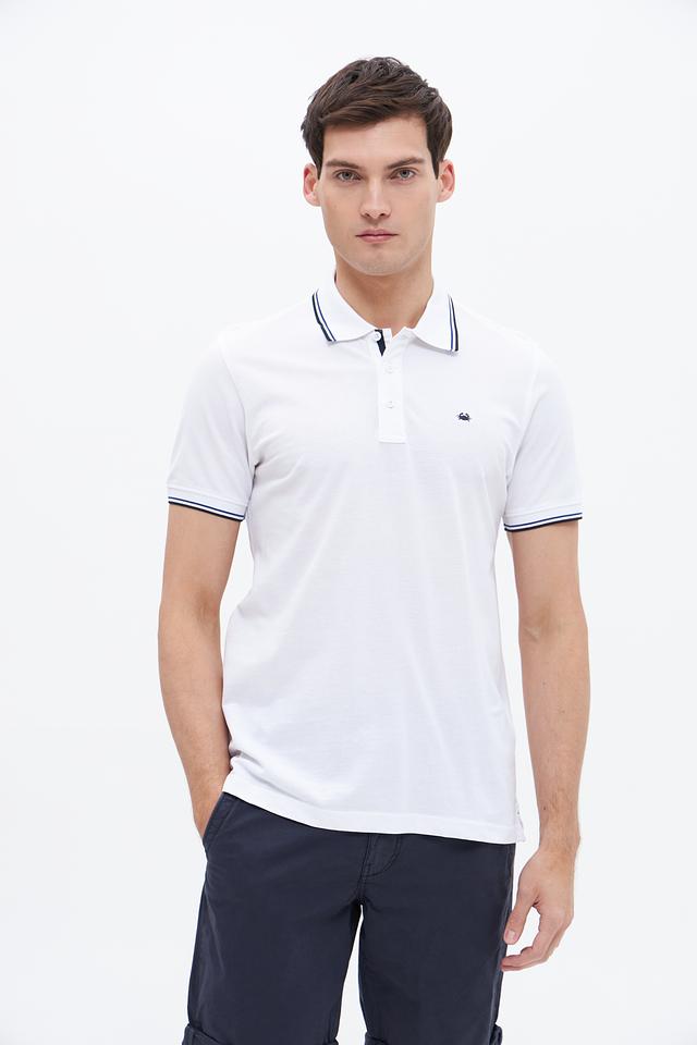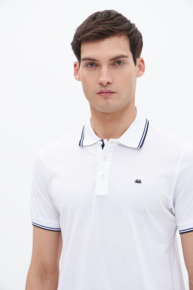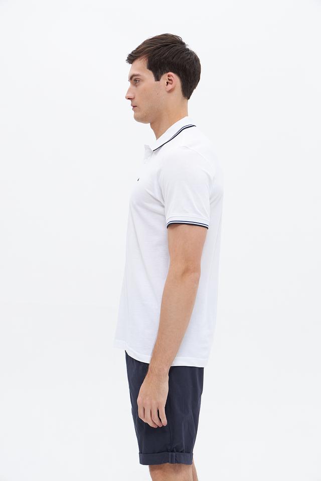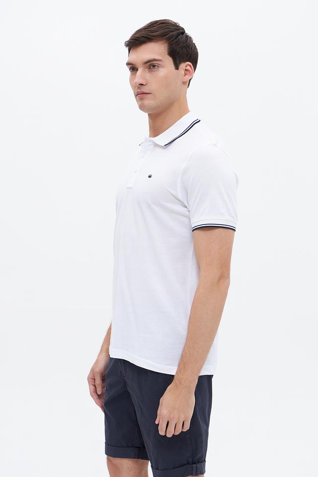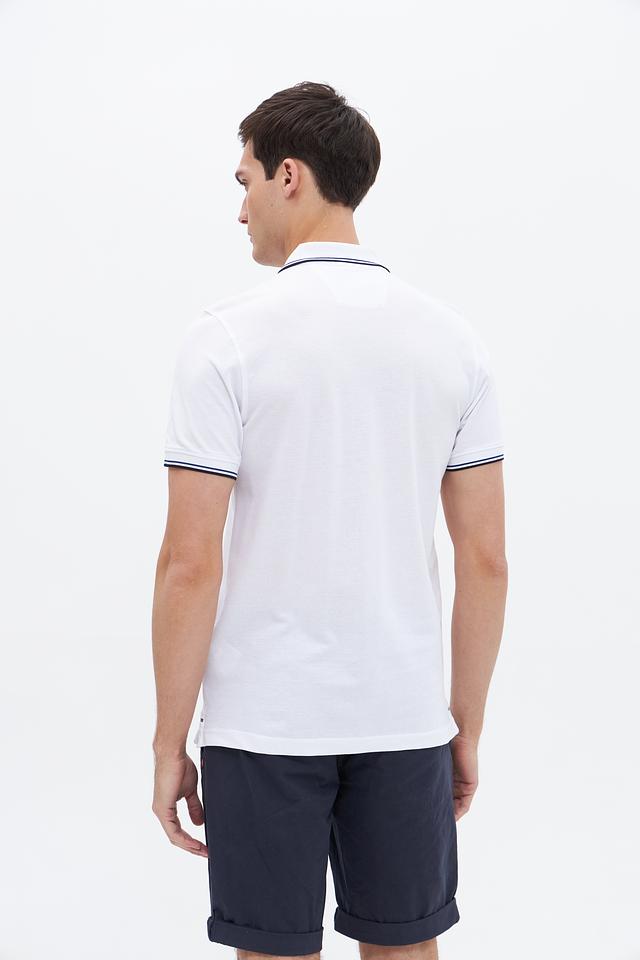Белое поло Granchio с контрастной полоской на воротнике и рукавах. Изготовлено из 100% хлопка, обеспечивающего комфорт и воздухопроницаемость. Состав: хлопок 100%