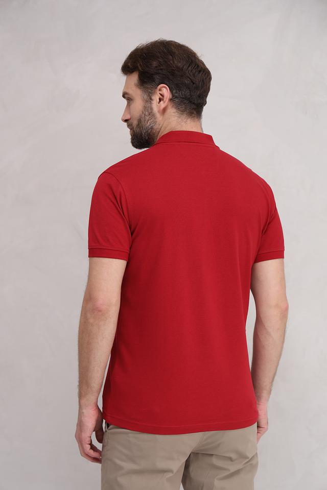 Эта модель имеет короткий рукав и традиционный воротник-поло с тремя пуговицами. На груди расположен небольшой логотип бренда, добавляющий изысканности. Яркий красный цвет делает это поло заметным элементом гардероба.