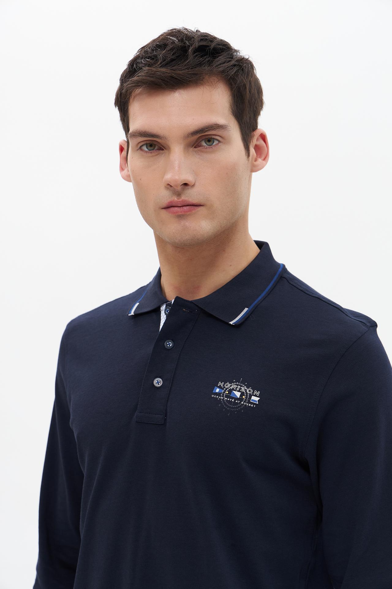 Поло Granchio, мужское, темно-синее, с длинным рукавом