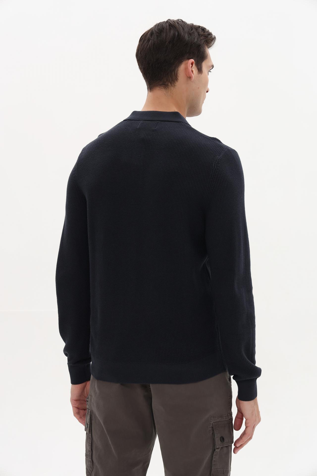 - Вязка: Оригинальная вязаная текстура придает поло особый шарм и выделяет его среди других моделей. Благодаря вязке поло выглядит более фактурным и интересным.