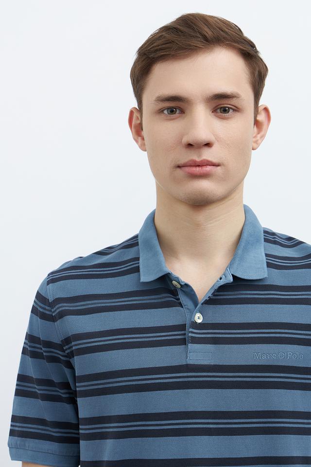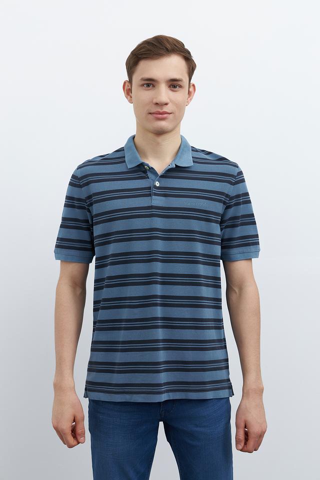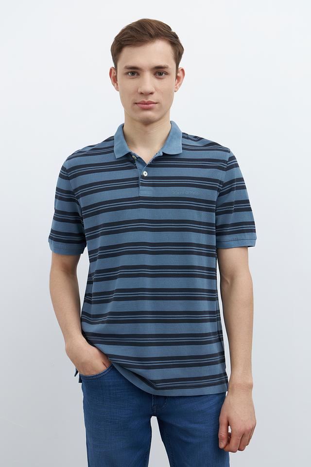 Мужское поло Marc O Polo синего цвета с классическим дизайном в полоску. Изготовлено из 100% хлопка, обеспечивающего комфорт и воздухопроницаемость. Отличный выбор для повседневного гардероба. Состав: хлопок 100%
