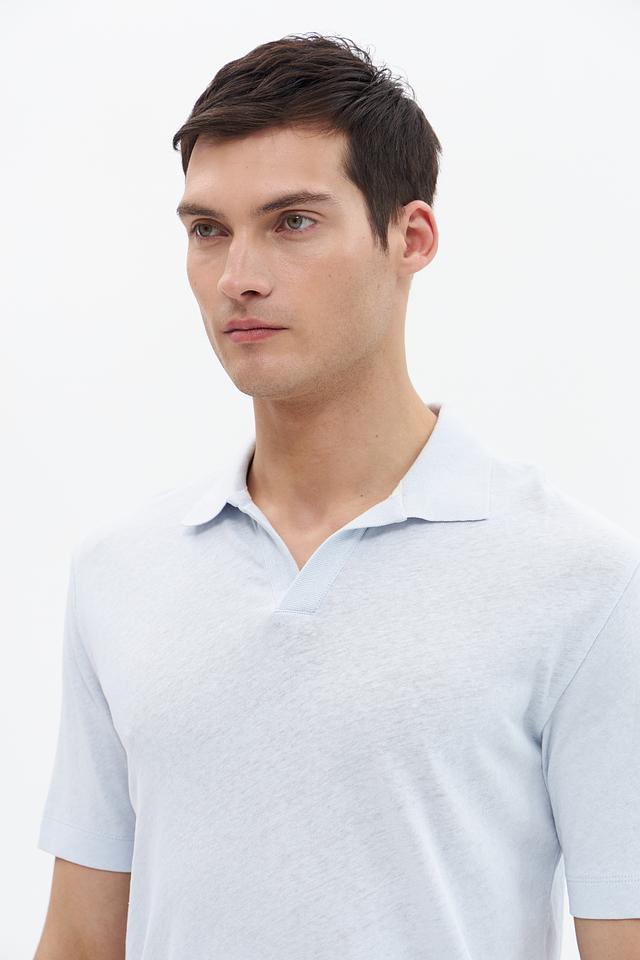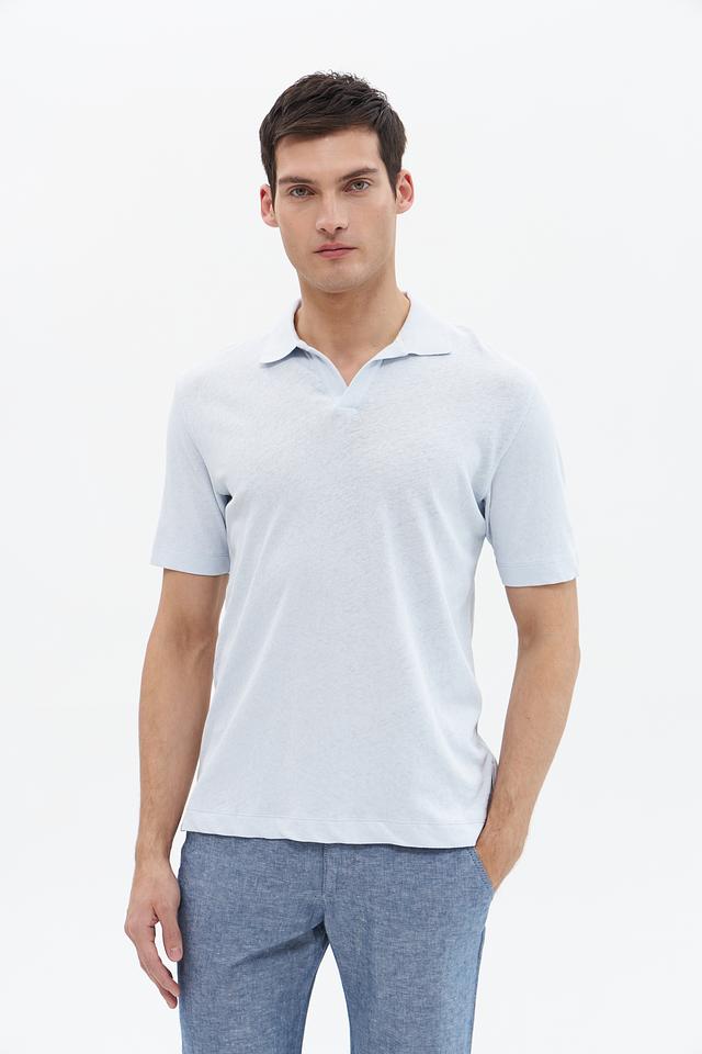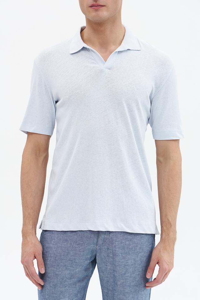Классический крой поло идеально подходит для создания различных образов – от повседневных до более элегантных. Светло-голубой цвет придает модели свежесть и легкость, а минималистичный дизайн делает ее универсальной.