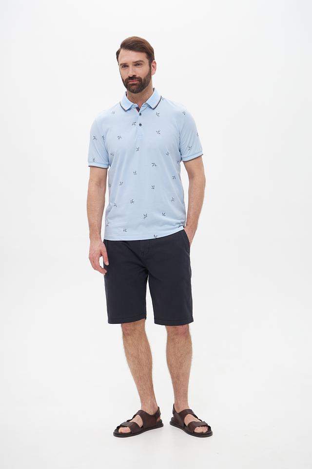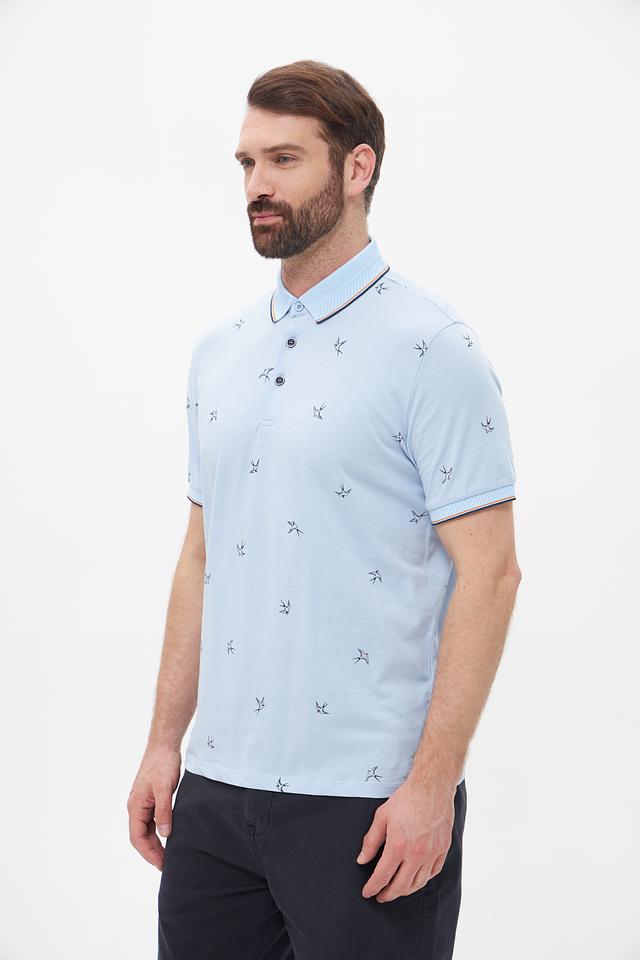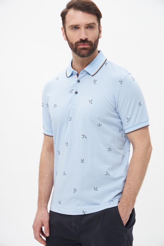 Голубое поло Monte Carlo из 100% хлопка с оригинальным принтом. Классический крой и комфортный материал обеспечивают удобную посадку и приятные ощущения при носке. Состав: хлопок 100%