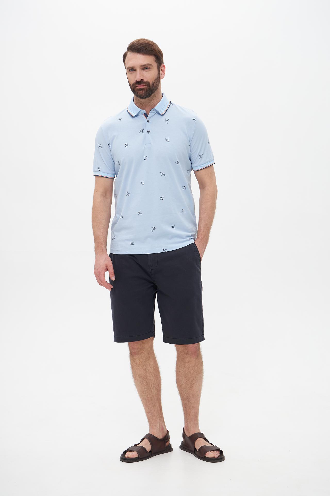 Поло Monte Carlo голубое с принтом из 100% хлопка