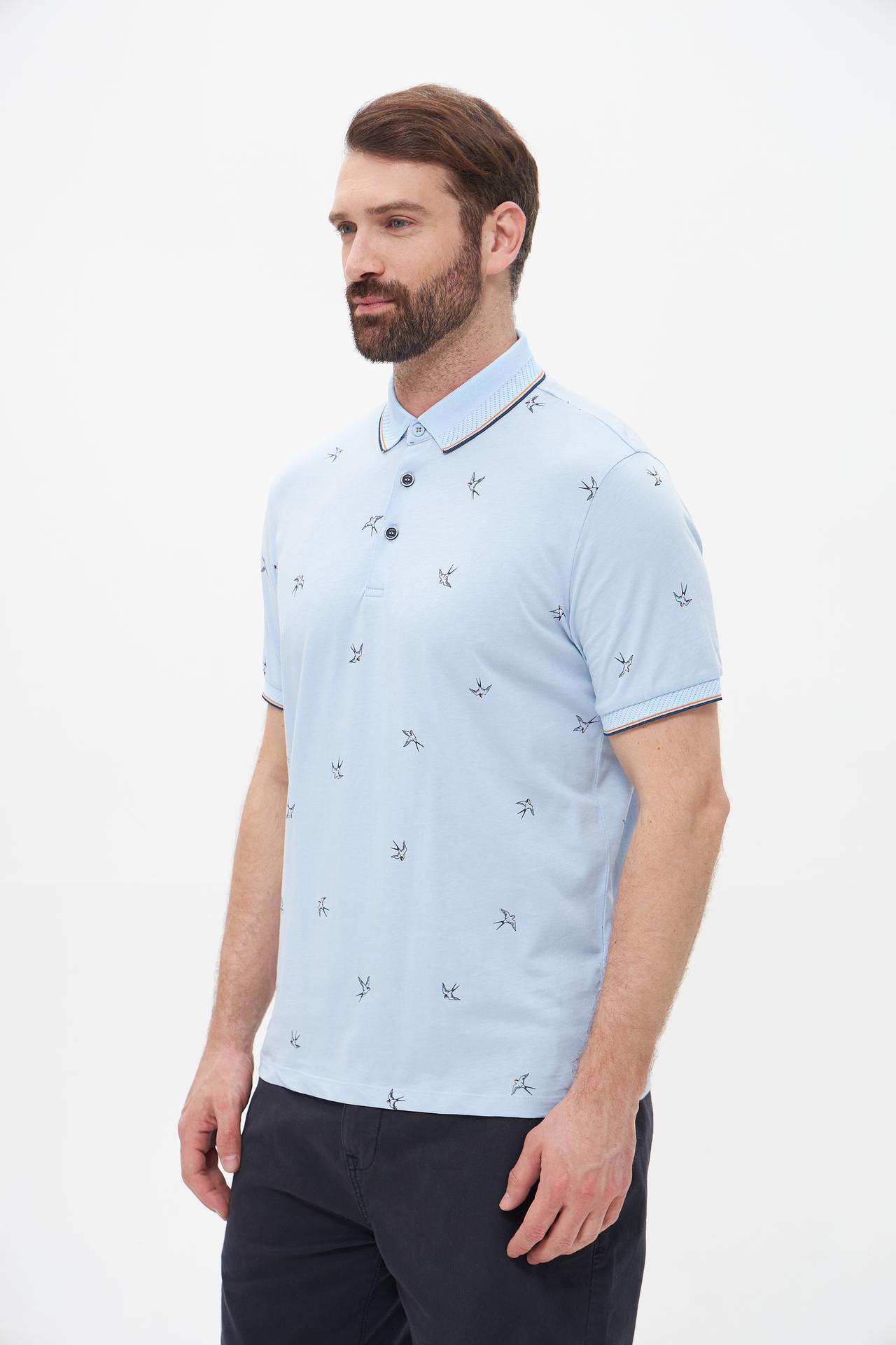 Элегантное мужское поло Monte Carlo, выполненное из 100% хлопка, станет отличным дополнением к вашему гардеробу. Мягкий и дышащий материал обеспечит комфорт в течение всего дня. Нежный голубой цвет с принтом в виде маленьких птиц придает модели свежий и стильный вид. Идеально подходит для создания непринужденных образов на каждый день.