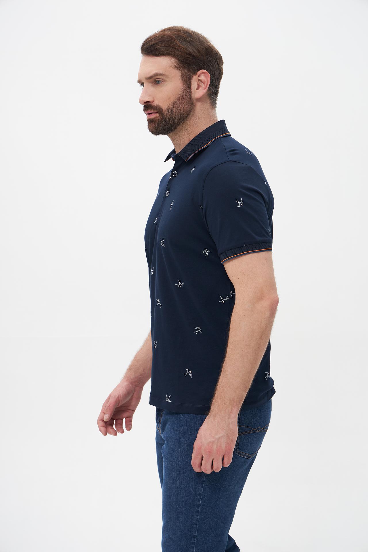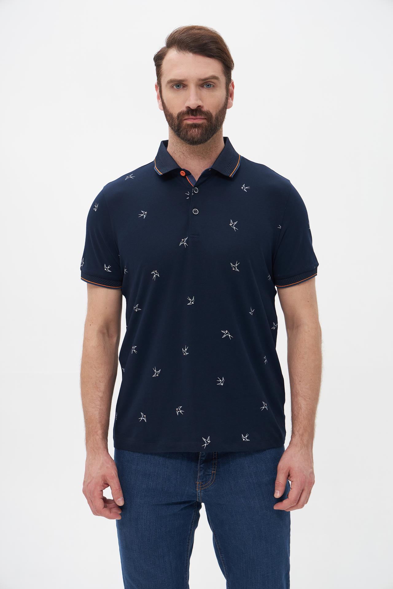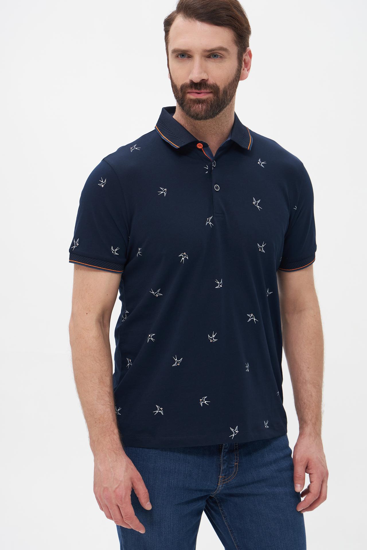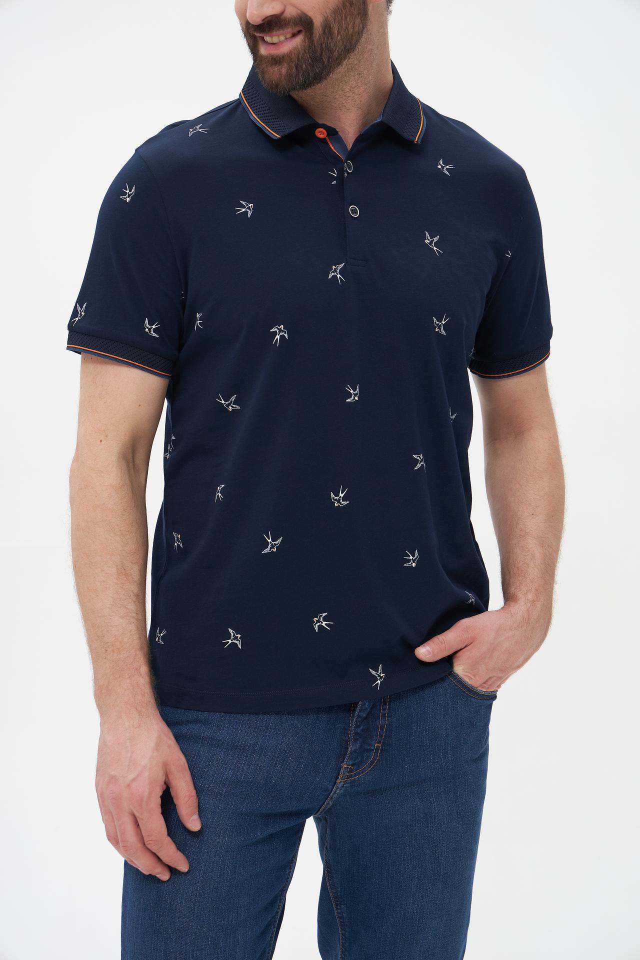 Поло Monte Carlo синее с принтом птицы, хлопок