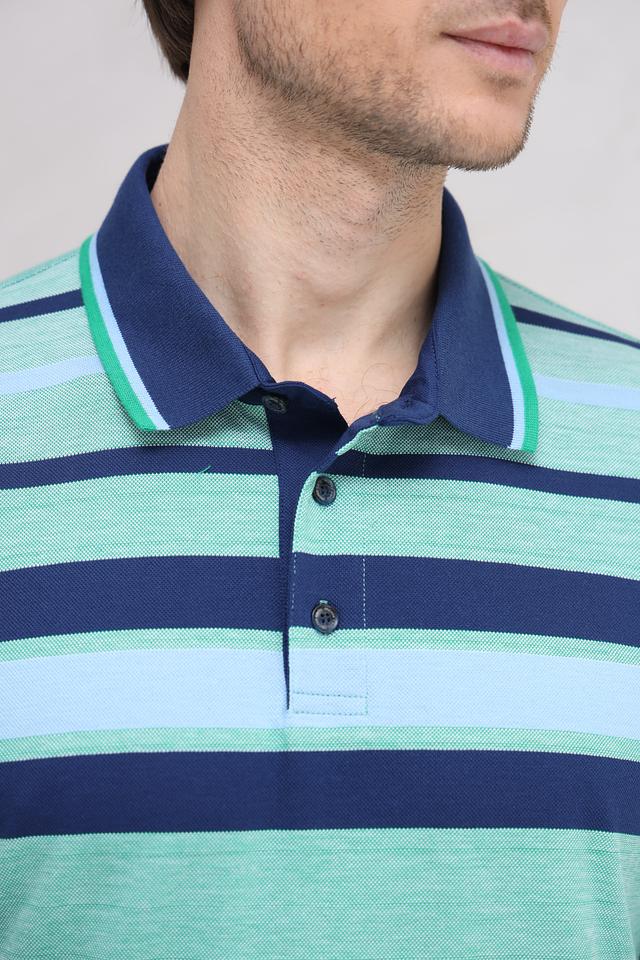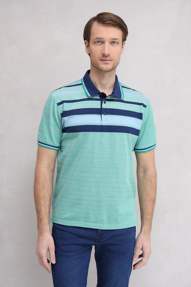 Это мужское поло от Monte Carlo выполнено в мятном цвете и украшено горизонтальными полосами синего и голубого оттенков. Классический крой и воротник-поло делают эту модель универсальной и подходящей для различных ситуаций.
