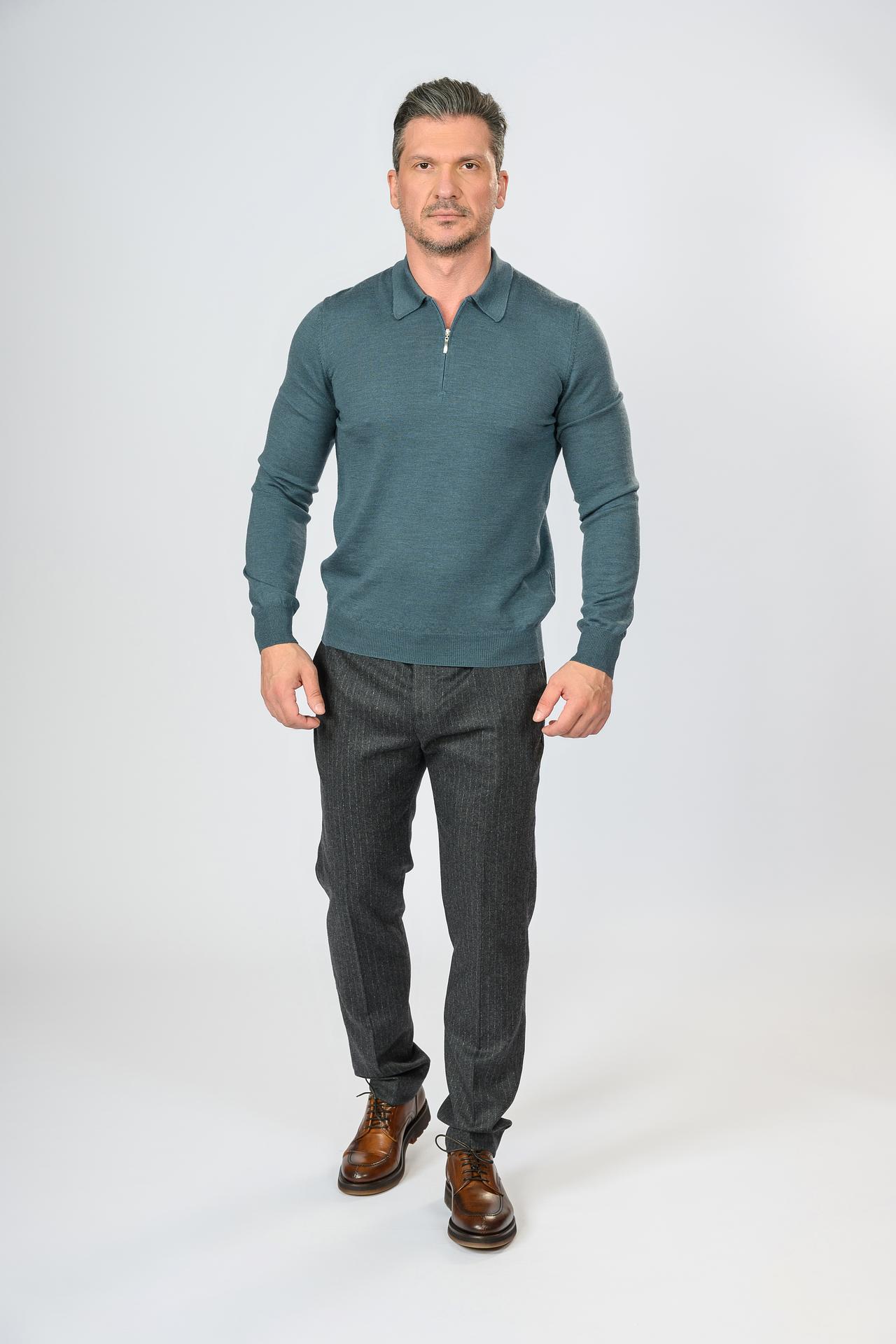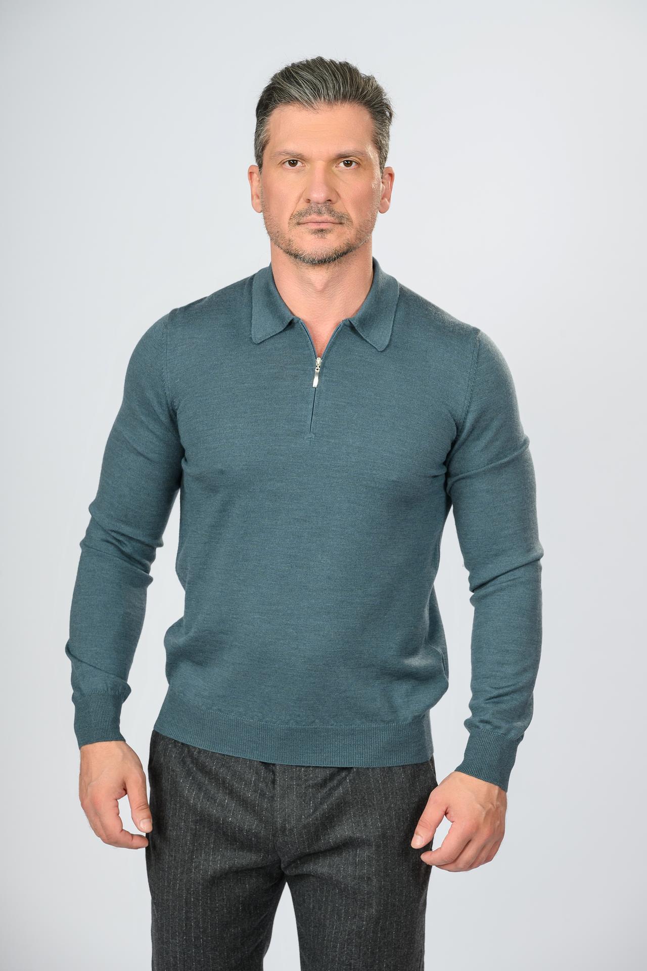 Поло шерстяное на молнии Gran Sasso, темно-бирюзовый