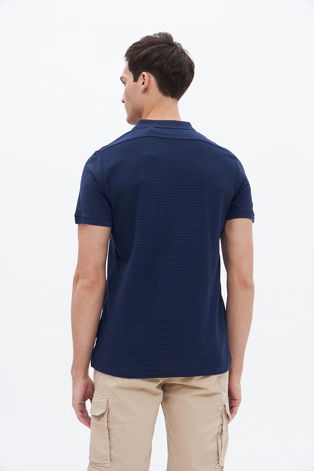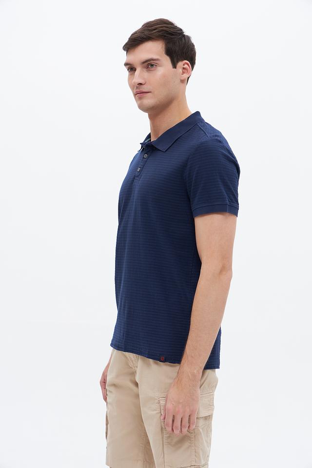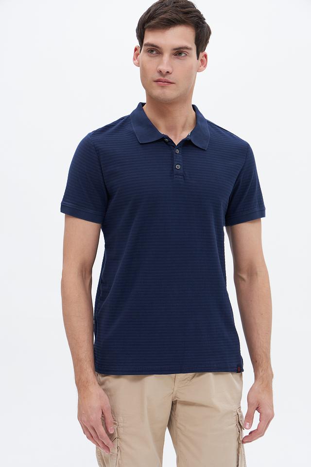 Мужское поло Time Zone тёмно-синего цвета выполнено из 100% хлопка и имеет текстурированную поверхность. Классический крой и короткие рукава делают эту модель универсальной для повседневной носки. Состав: хлопок 100%