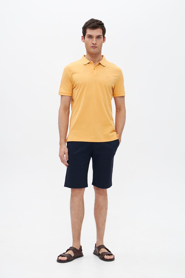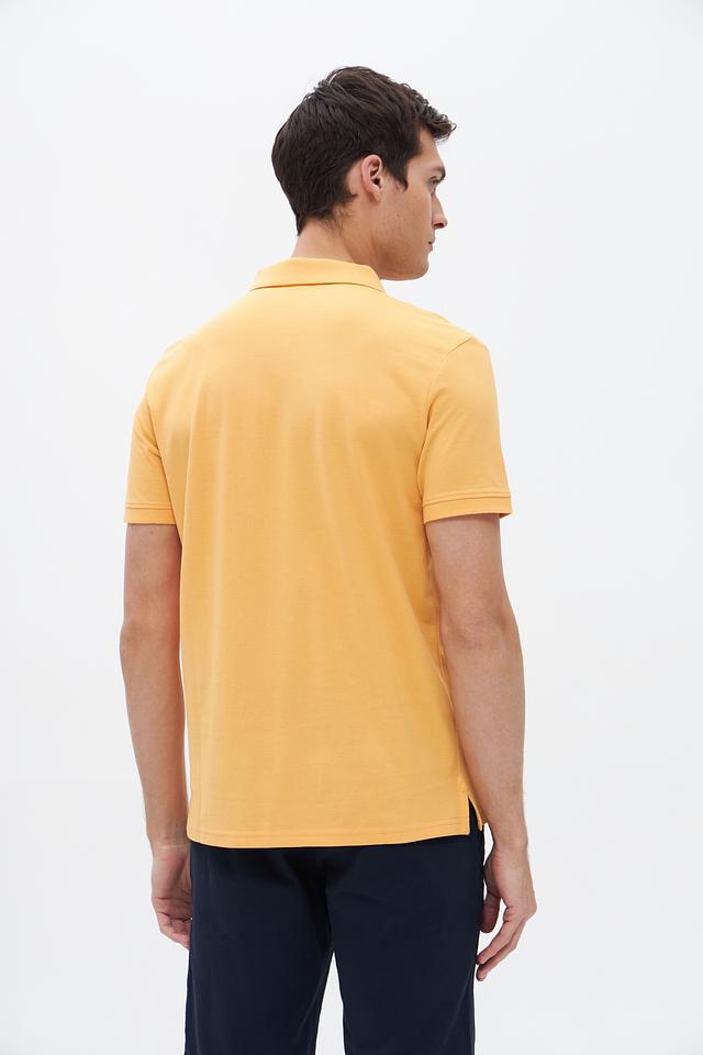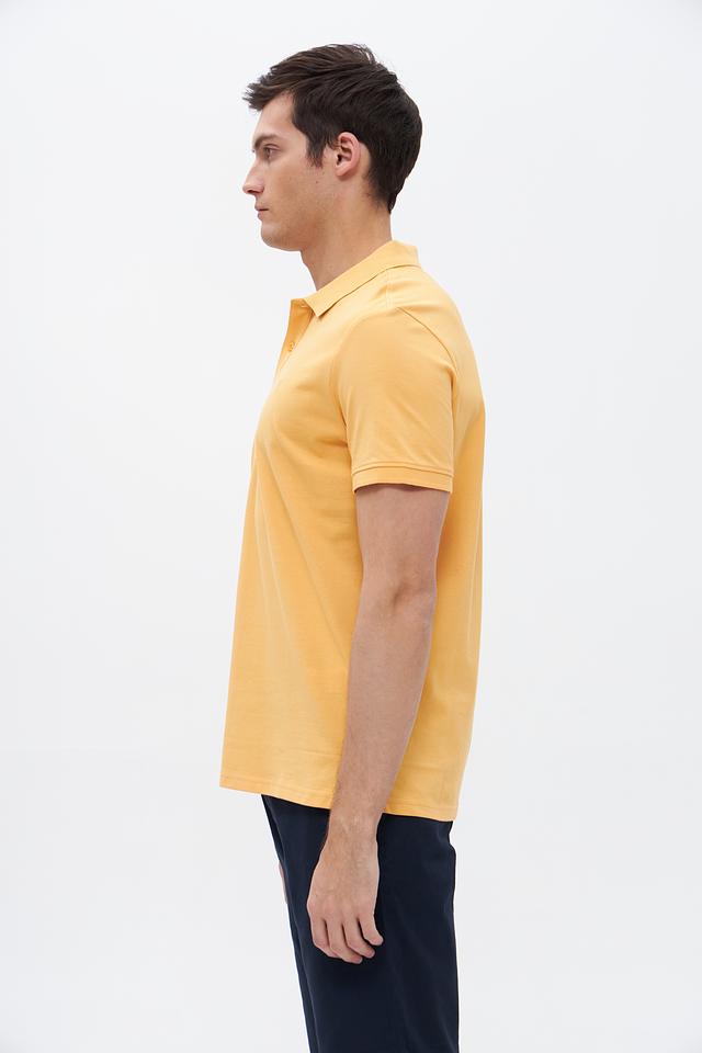 Поло имеет классический крой, который подходит для большинства типов фигур. Горчичный цвет придает образу свежесть и оригинальность, легко сочетается с различными элементами гардероба.