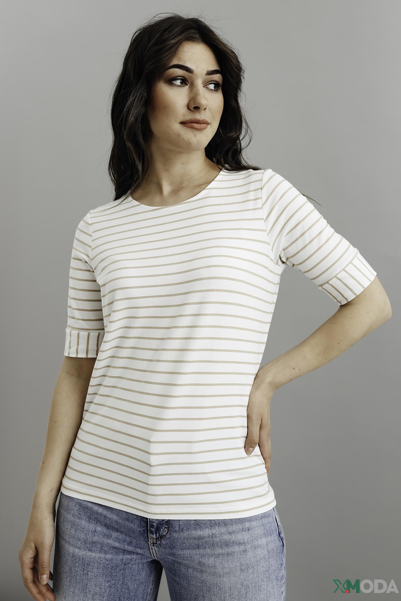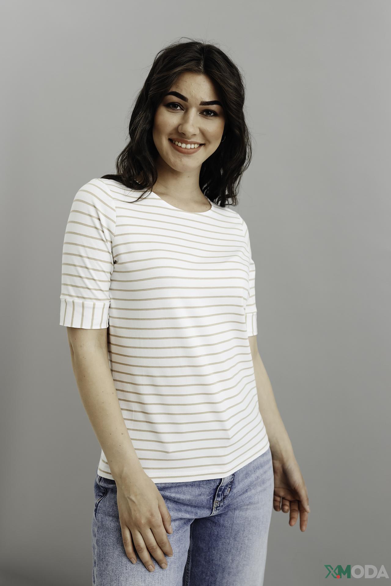 Полосатый дизайн придает образу свежесть и динамичность, делая эту футболку отличным выбором для создания модных и непринужденных образов. Сочетайте её с джинсами, юбками или шортами – она легко адаптируется к любому стилю. Отличное качество пошива гарантирует долговечность и сохранение формы после стирок.