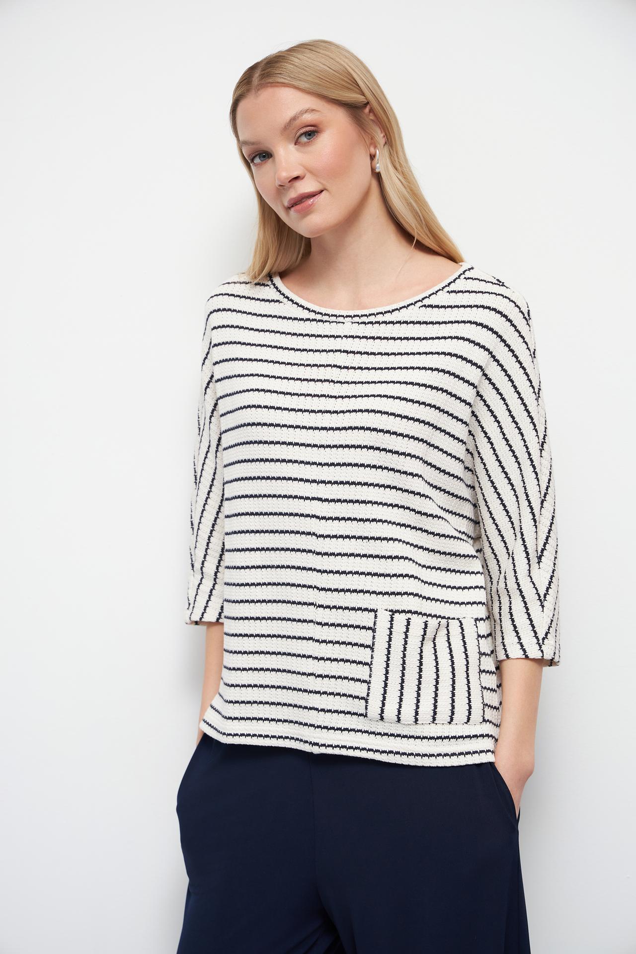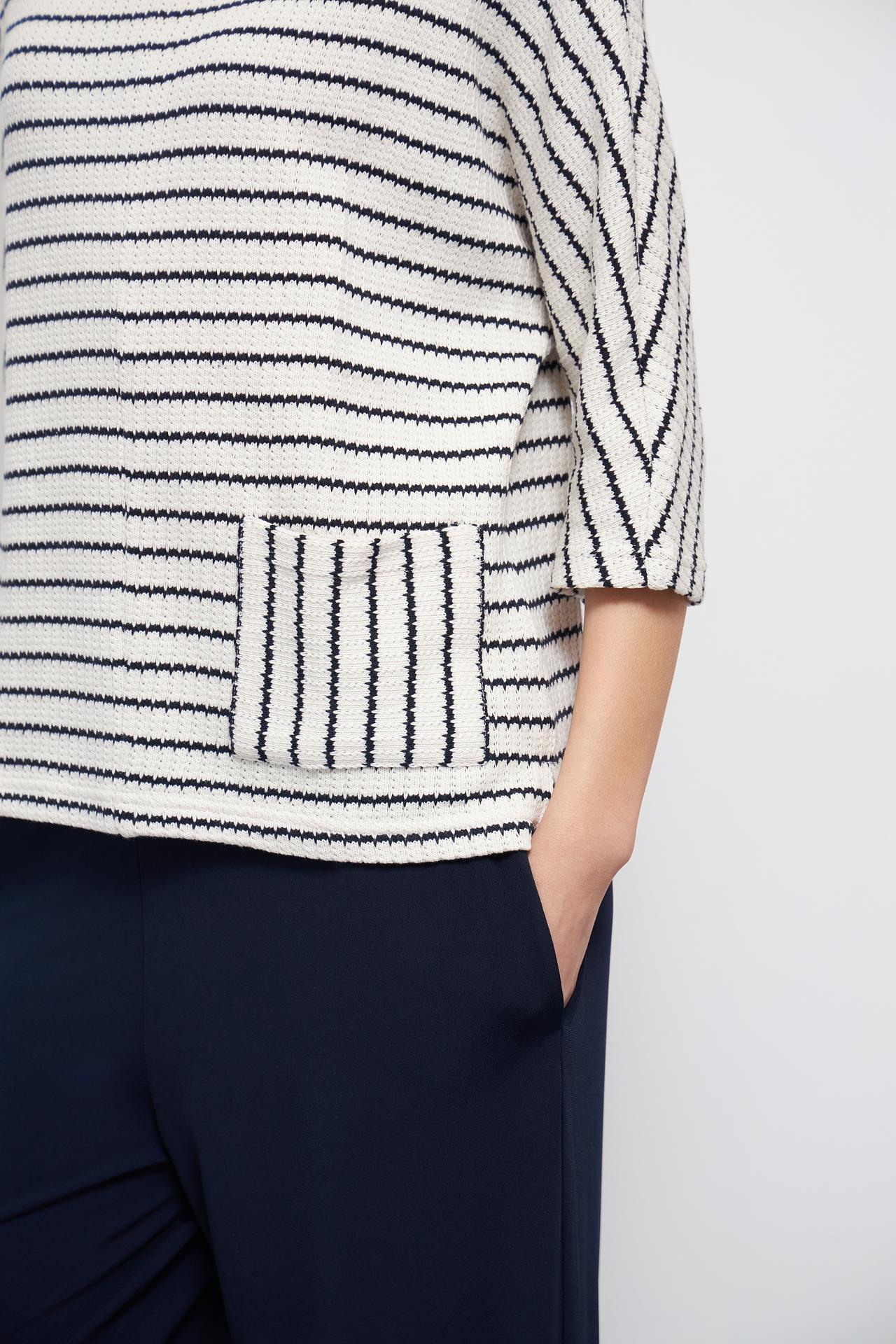 Полосатый пуловер Oui с карманом, молочный / темно-синий