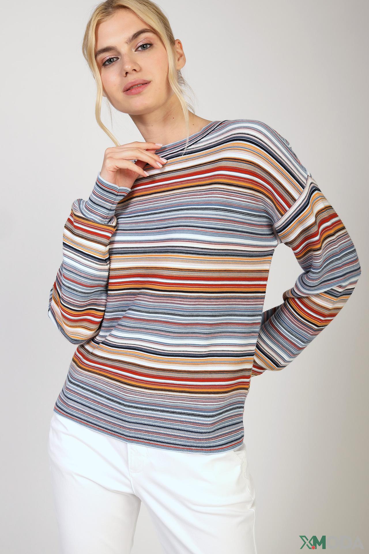 Пуловер Rich and Royal в полоску – это стильный и универсальный элемент гардероба. Изготовленный из 100% хлопка, он обеспечивает комфорт и мягкость при носке. Этот женский пуловер идеально подходит для создания разнообразных образов, от повседневных до более элегантных. Полосатый узор придает ему особый шарм и делает его актуальным для любого сезона.
