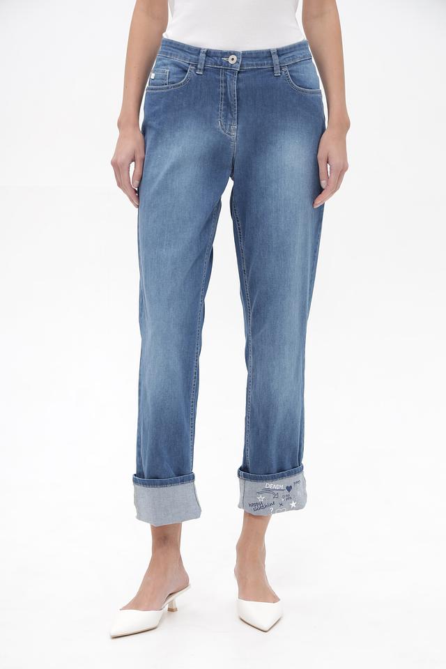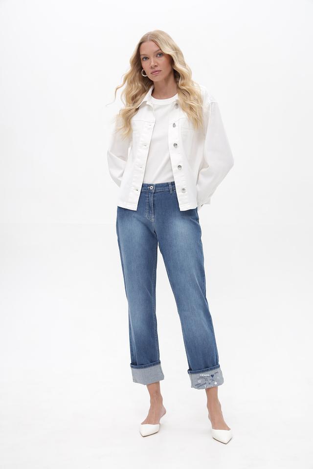 Джинсы выполнены из высококачественного хлопка, дополненного полибутилентерефталатом и эластаном. Такое сочетание материалов гарантирует долговечность, приятные тактильные ощущения и хорошую посадку по фигуре. Декоративные вышивки на штанинах придают джинсам оригинальный и модный вид.