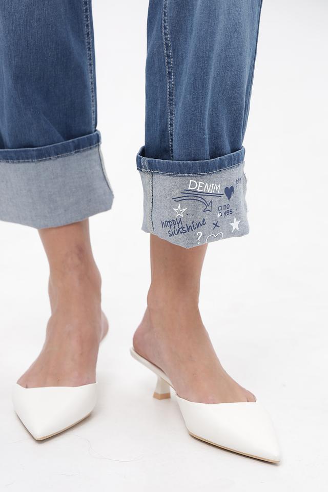 Синие джинсы Ppep. свободного кроя с вышивкой на штанинах. Модель выполнена из хлопка с добавлением полибутилентерефталата и эластана для комфорта и сохранения формы. Состав: хлопок 92%, полибутилентерефталат 8%, эластан 3%