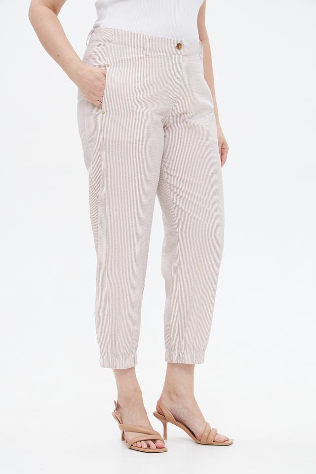 Стильные брюки Ppep бежевого цвета в тонкую полоску станут отличным дополнением к вашему гардеробу. Изготовлены из смесового состава хлопка и полиэстера, обеспечивающего комфорт и практичность. Состав: полиэстер 50%, хлопок 50%
