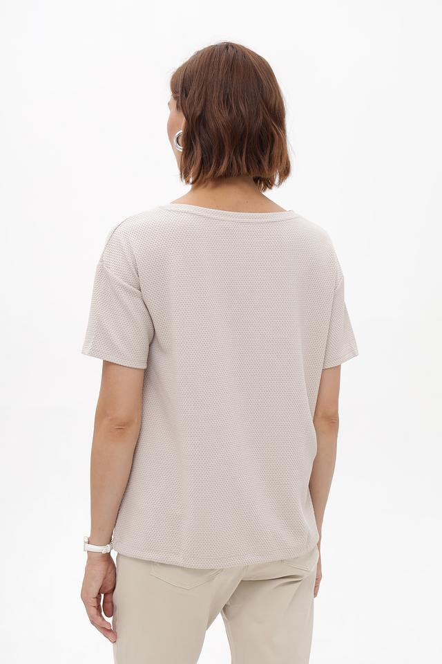 Модель имеет прямой, свободный крой, который обеспечивает комфортную посадку по фигуре. Круглый вырез горловины и короткие рукава делают пуловер идеальным выбором для теплой погоды.