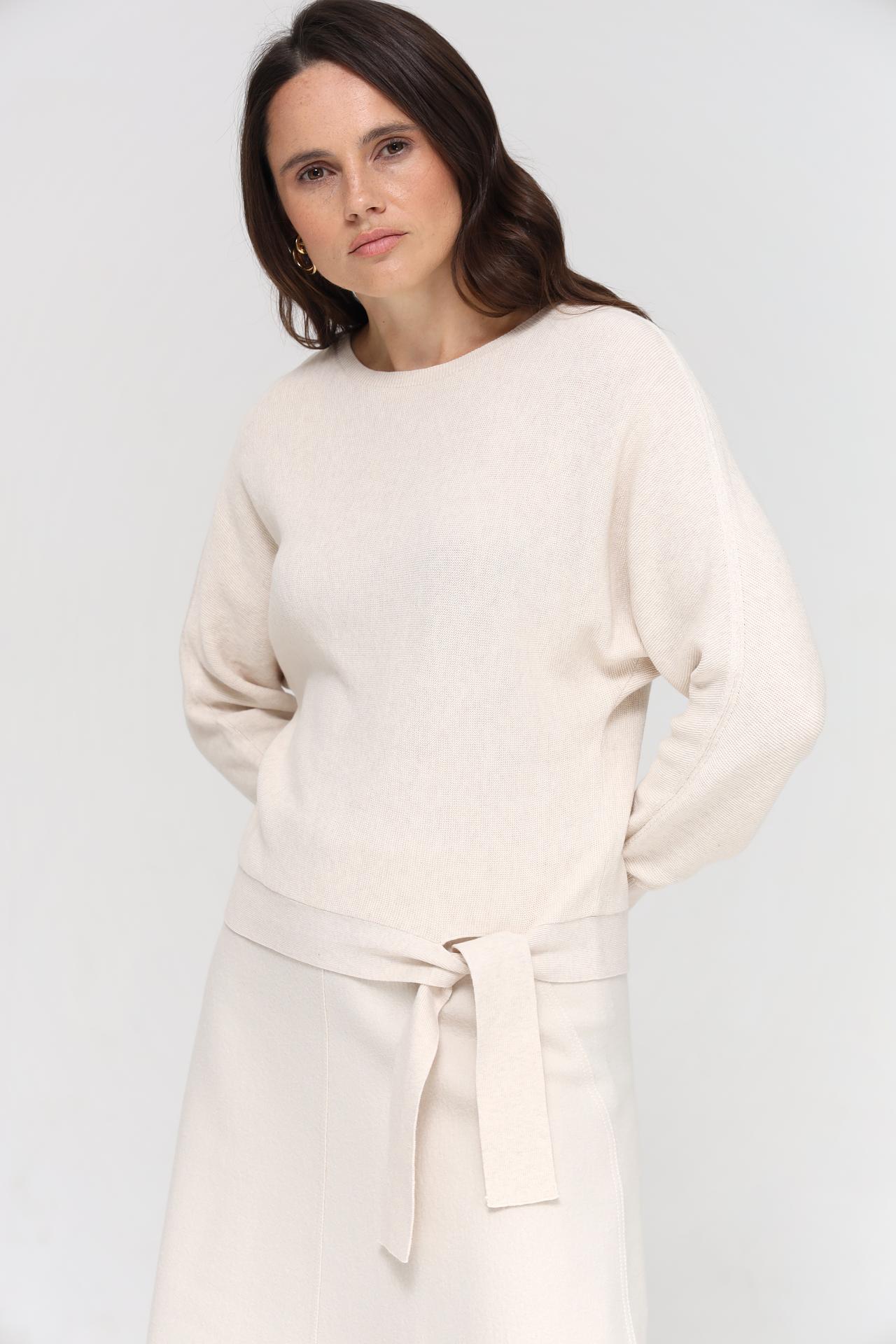 Пуловер Betty Barclay молочный с поясом 100% хлопок