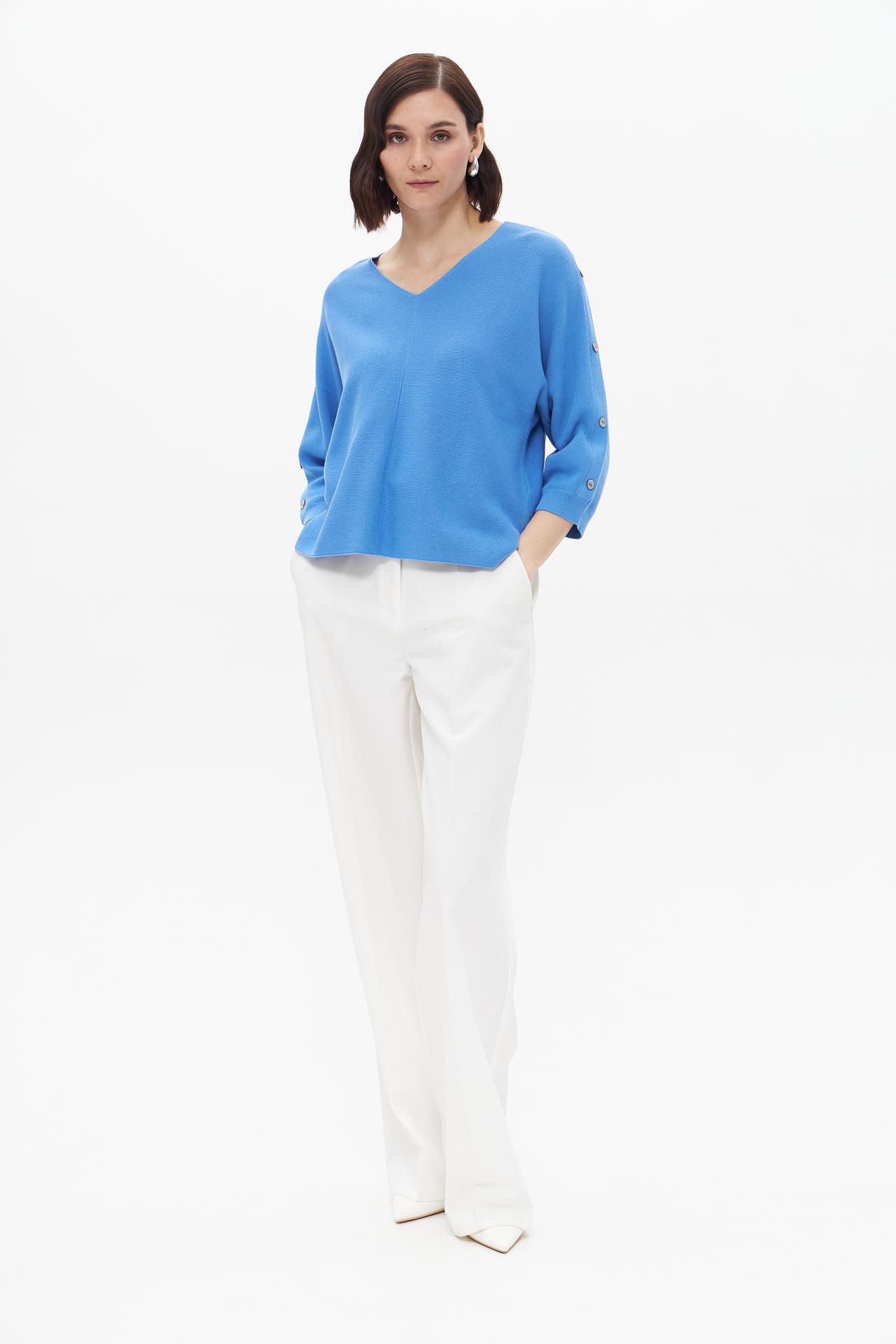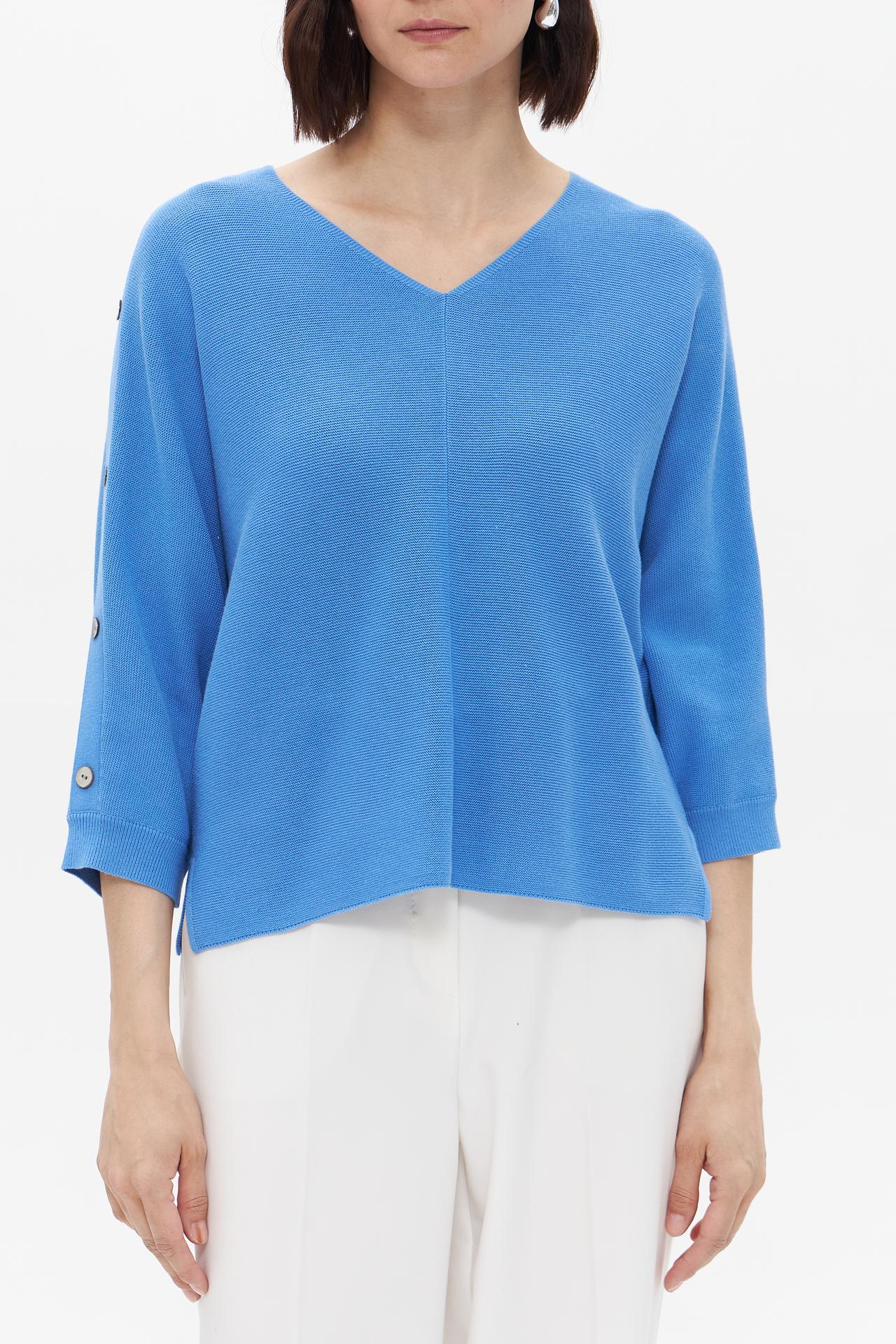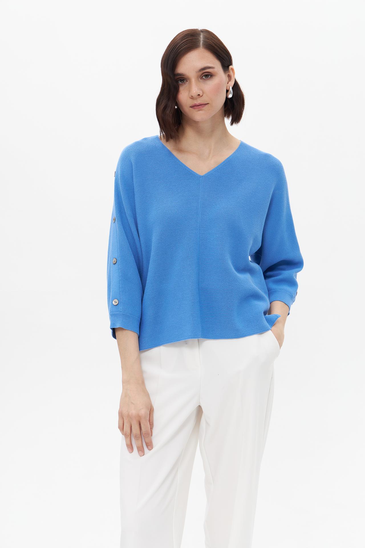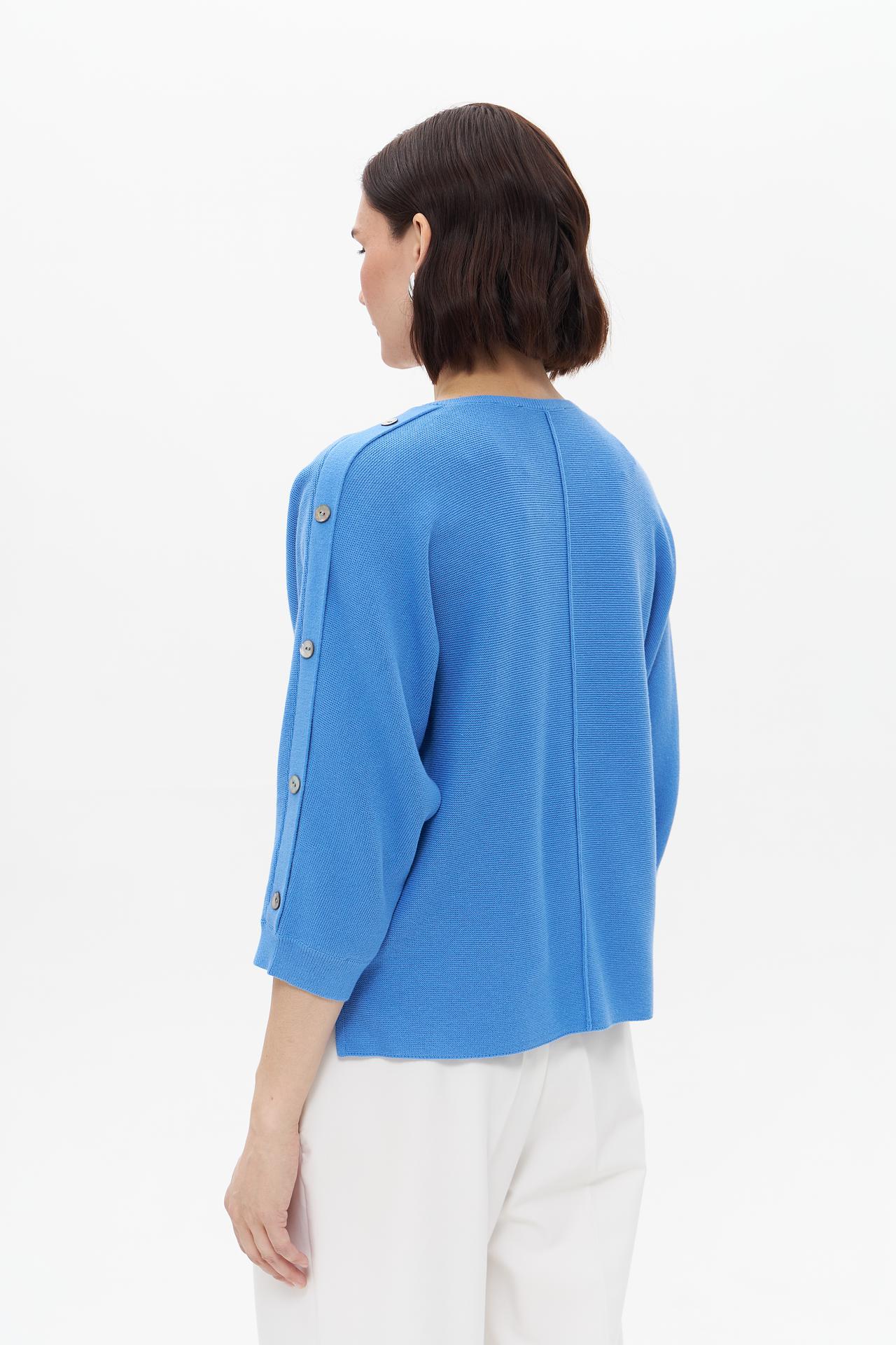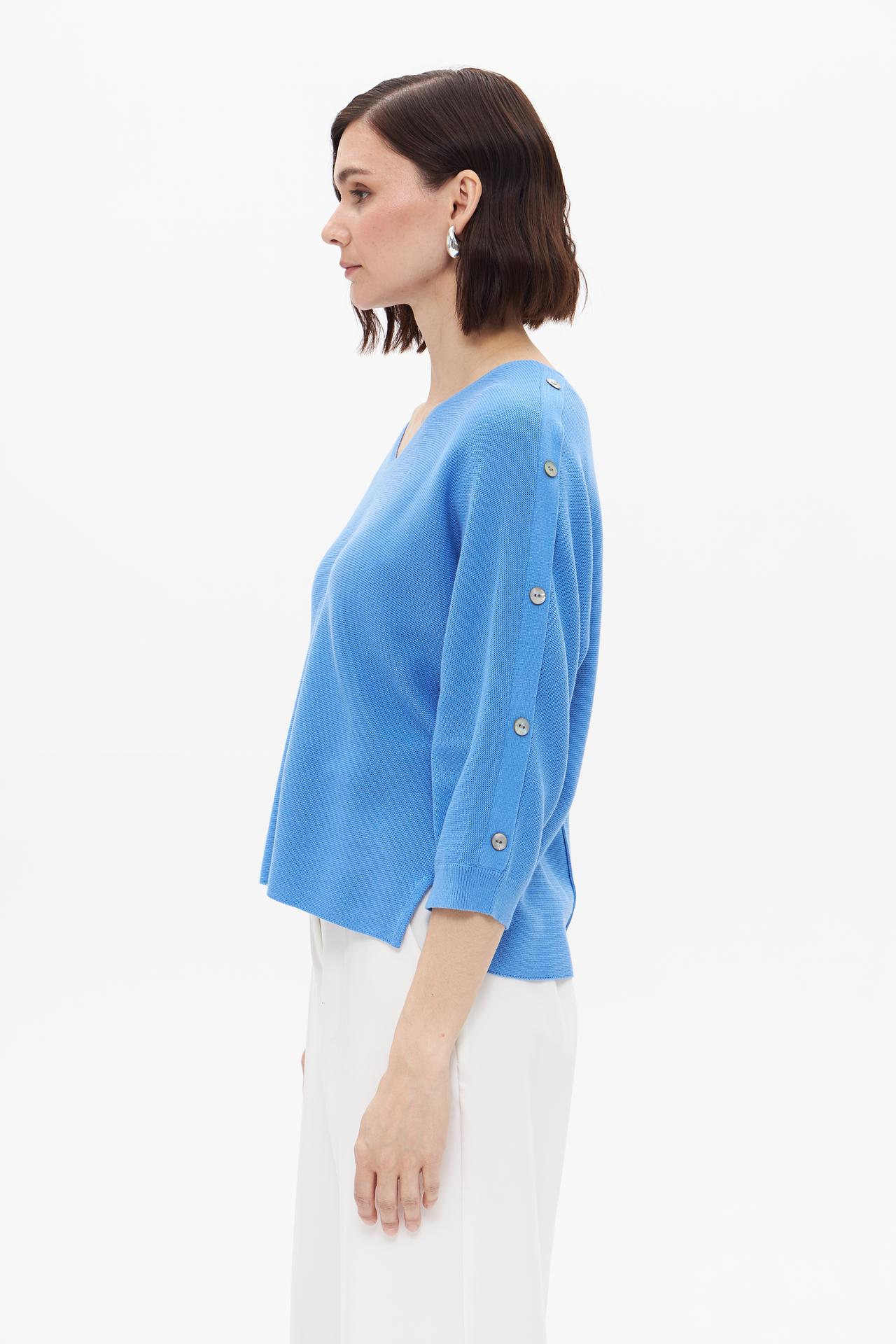 Пуловер Bianca голубой с рукавами 3/4 и пуговицами
