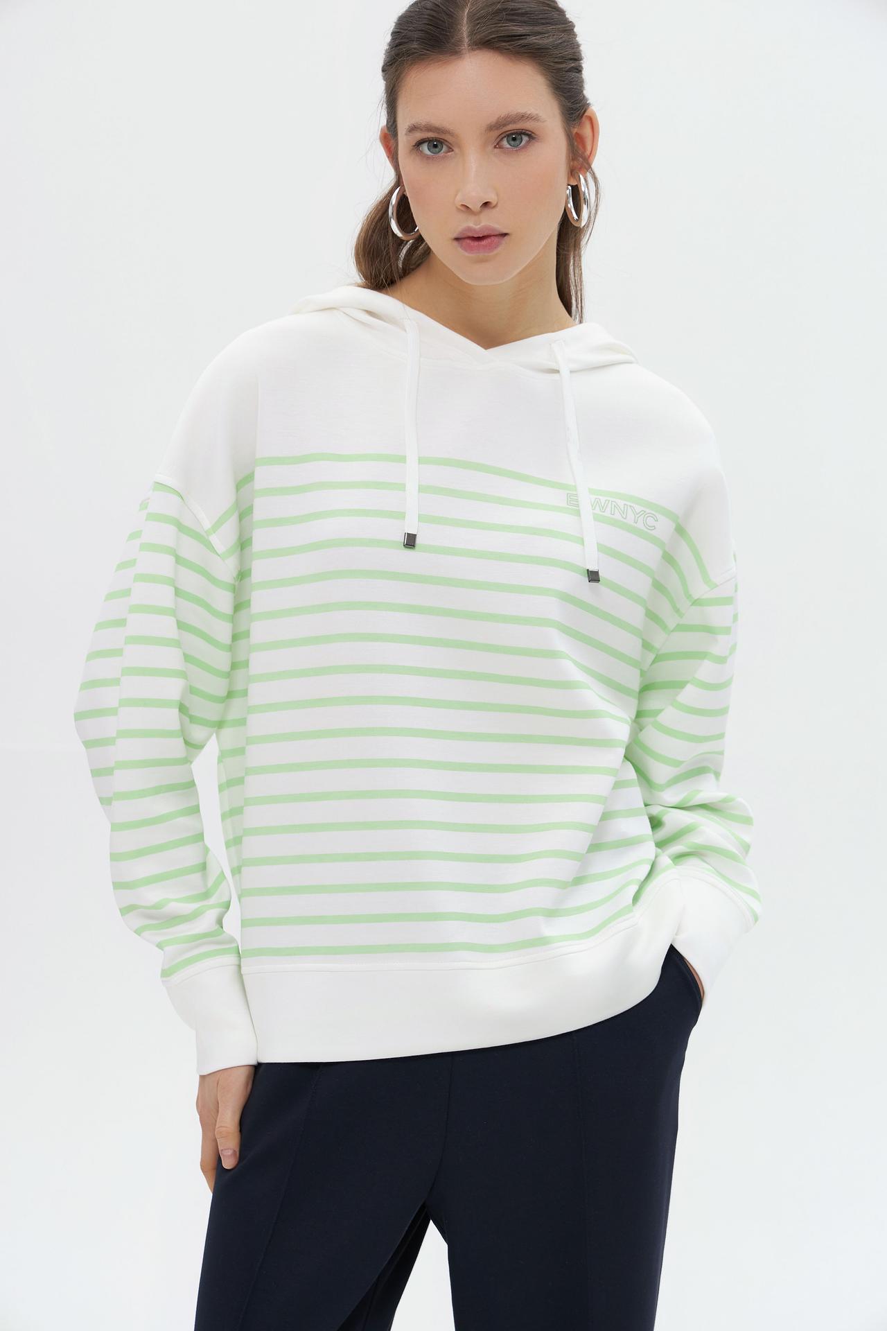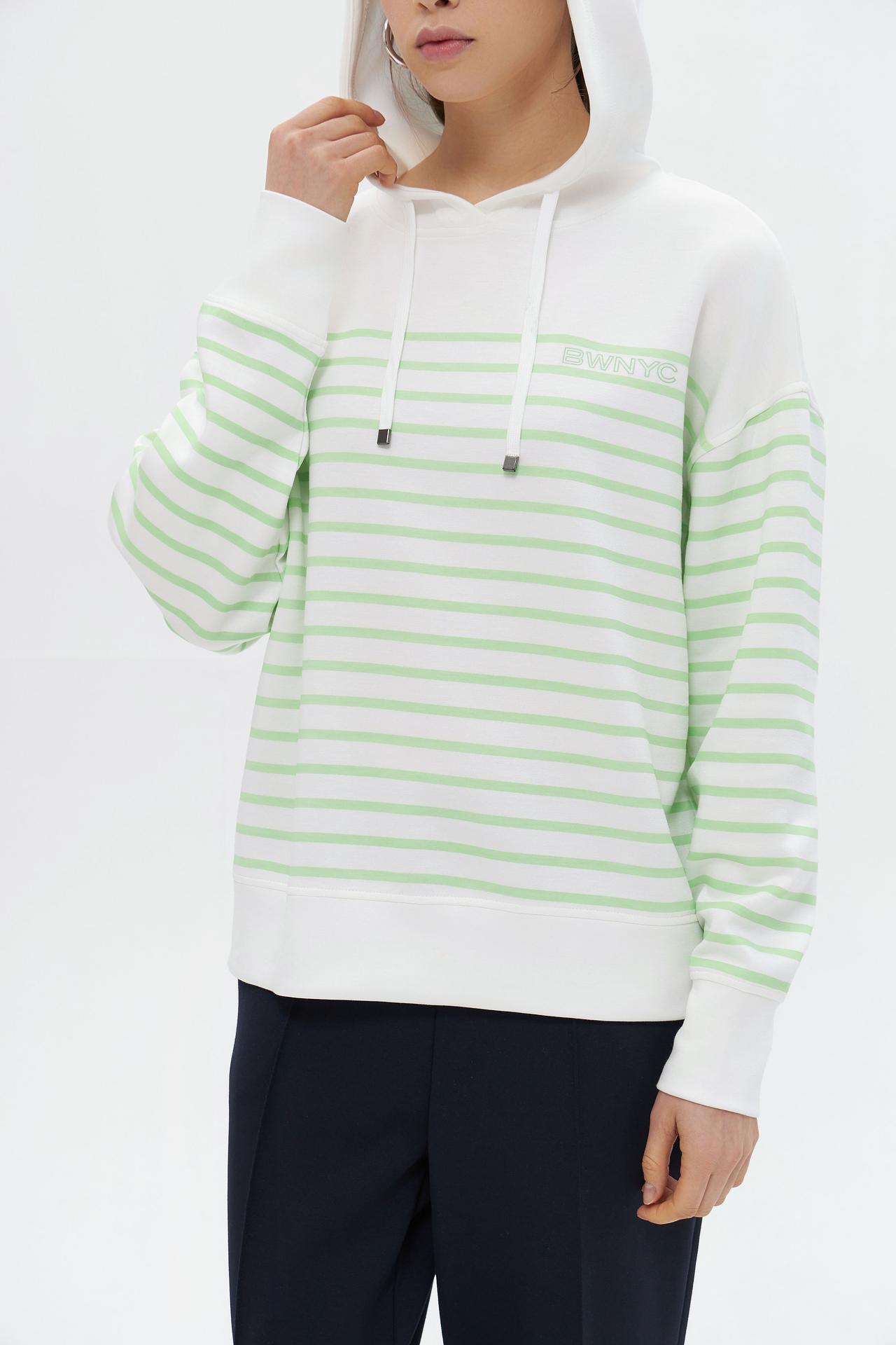 Пуловер Broadway, бело-зелёный полосатый с капюшоном