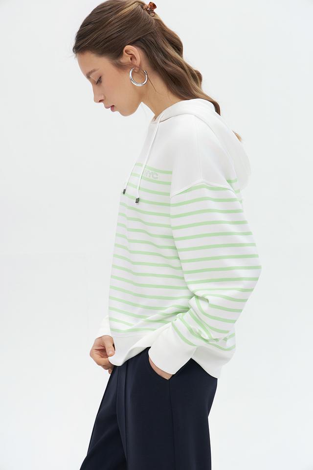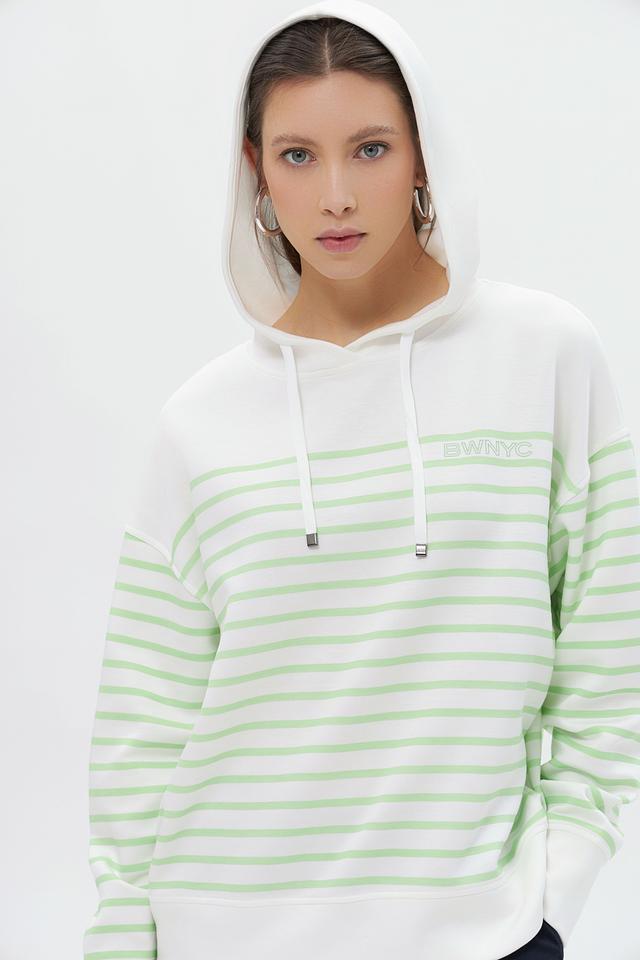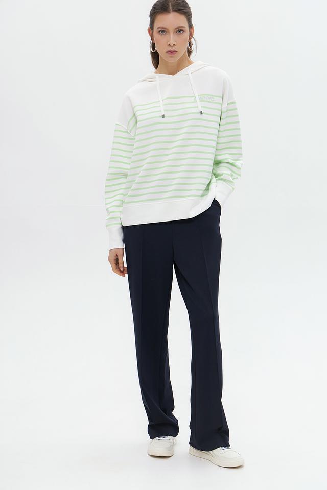 Женский пуловер Broadway белого цвета с зелёными полосками и капюшоном станет отличным дополнением к вашему гардеробу. Модель выполнена из мягкого и приятного к телу трикотажа, обеспечивающего комфорт в течение дня. Состав: полиэстер 49%, вискоза 43%, эластан 8%