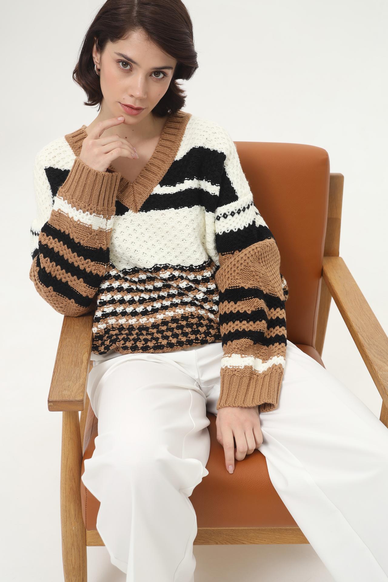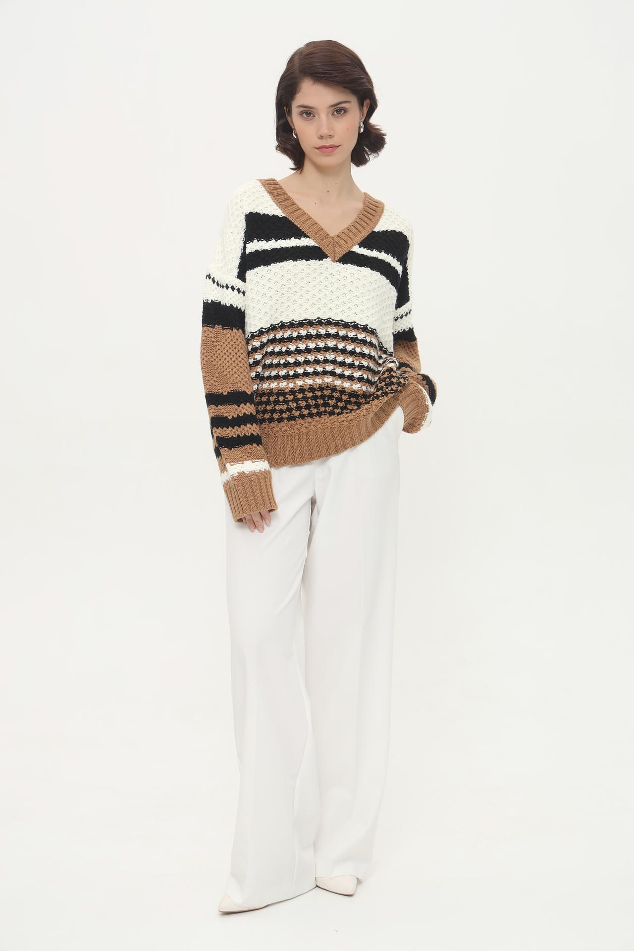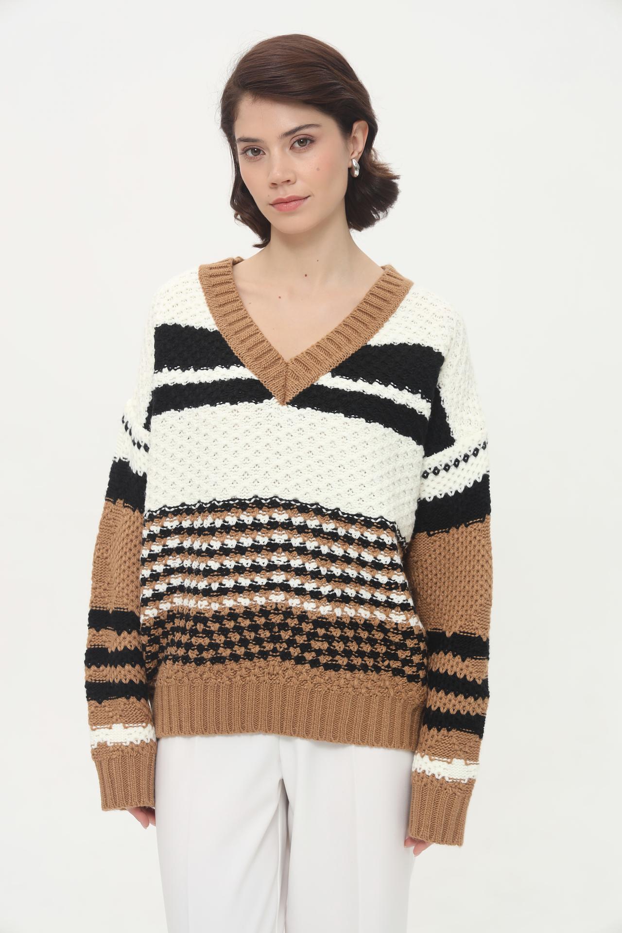 Пуловер Broadway вязаный в полоску бежевый, черный, белый