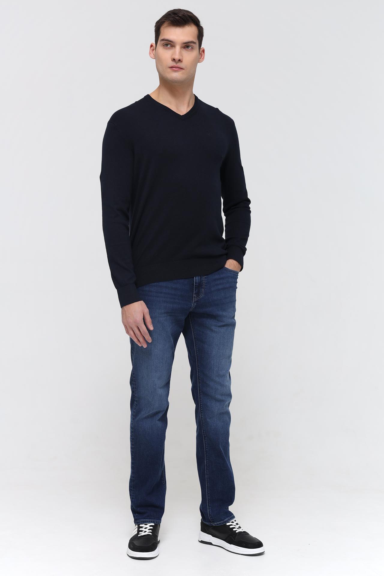 Пуловер Bugatti, V-образный вырез, темно-синий