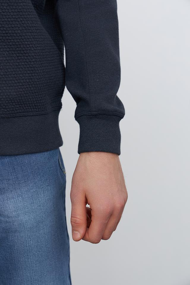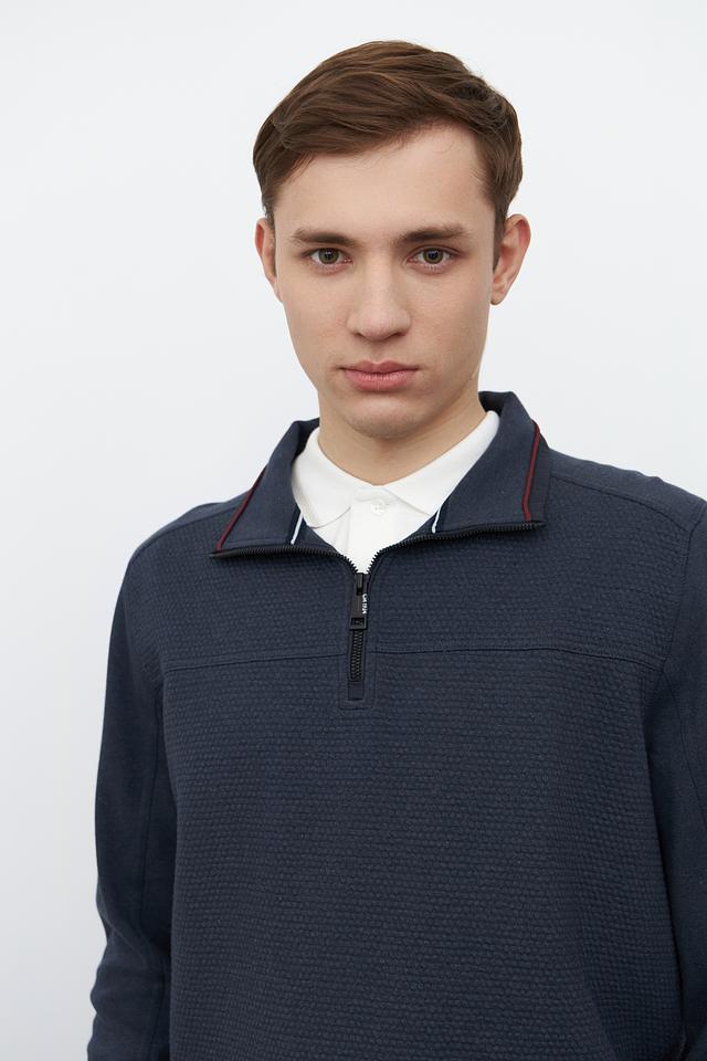 Мужской джемпер Casa Moda темно-синего цвета с короткой молнией и текстурной вязкой. Модель дополнена декоративной отделкой на воротнике и нашивкой на рукаве, что придает ей стильный и современный вид. Состав: хлопок 62%, полиэстер 35%, эластан 3%