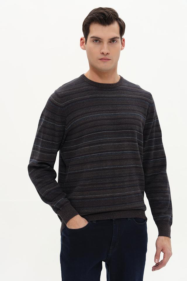 Мужской джемпер Casa Moda серого цвета с полосатым рисунком. Изготовлен из 100% хлопка, обеспечивающего комфорт и удобство в носке. Классический крой и универсальный дизайн. Состав: хлопок 100%