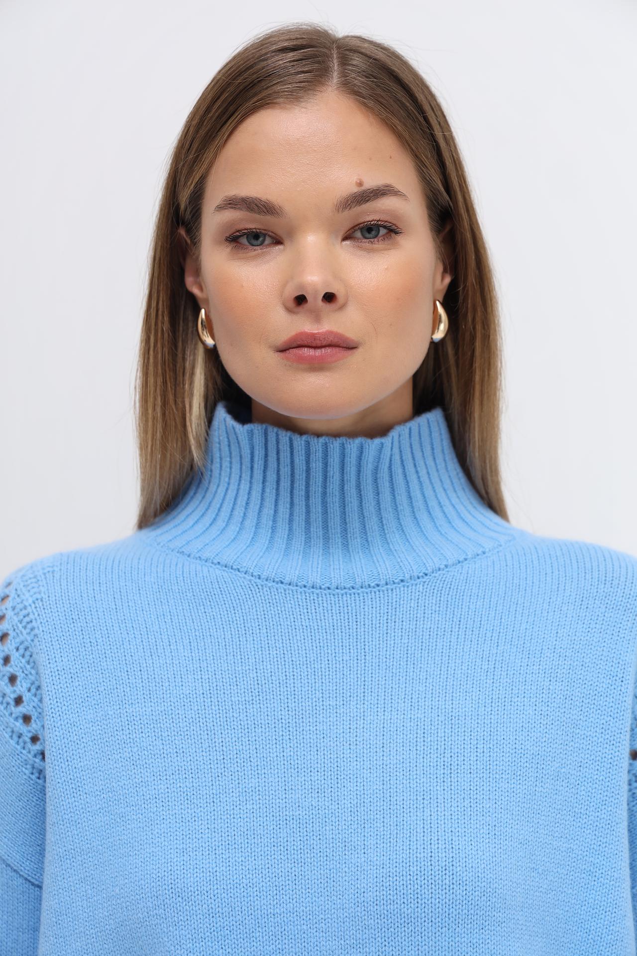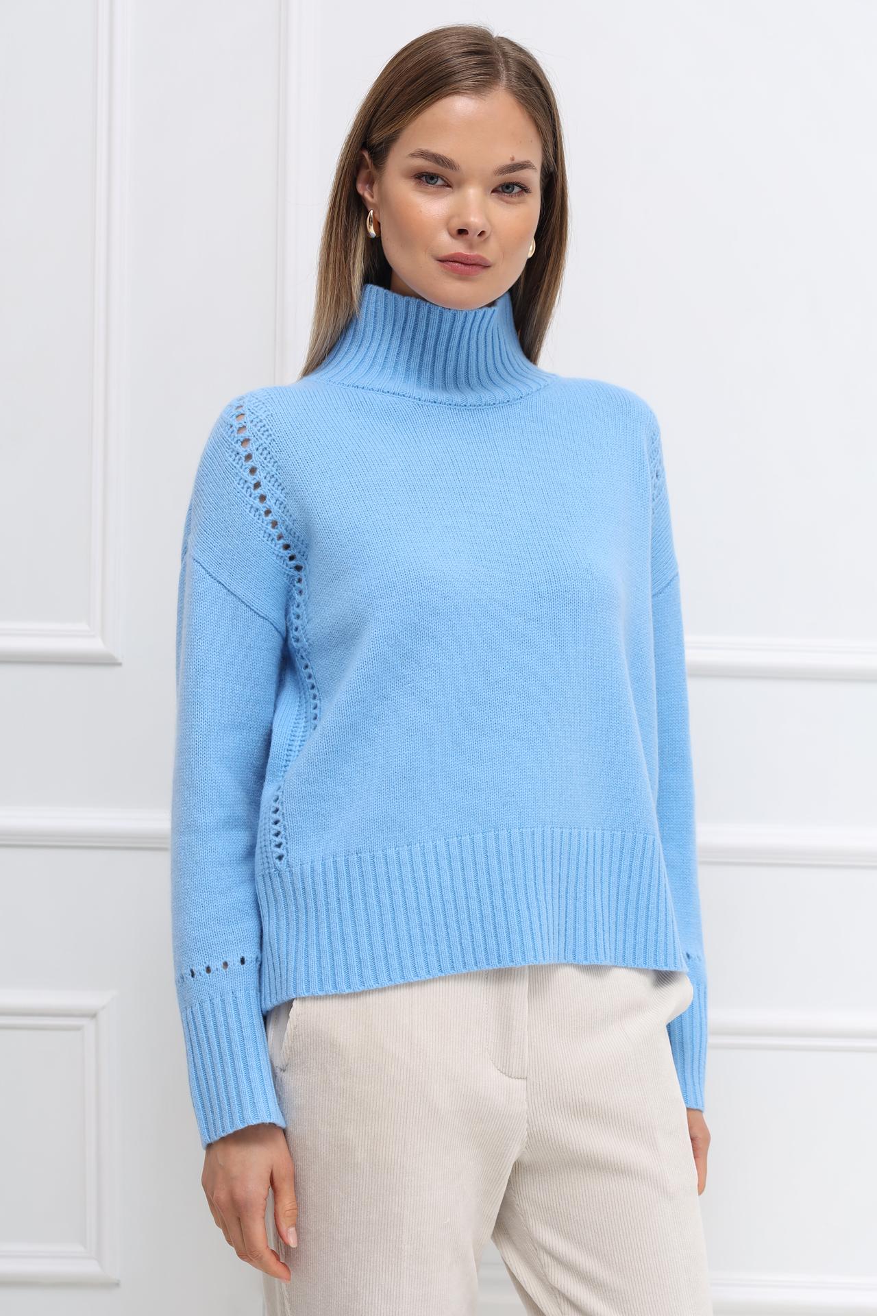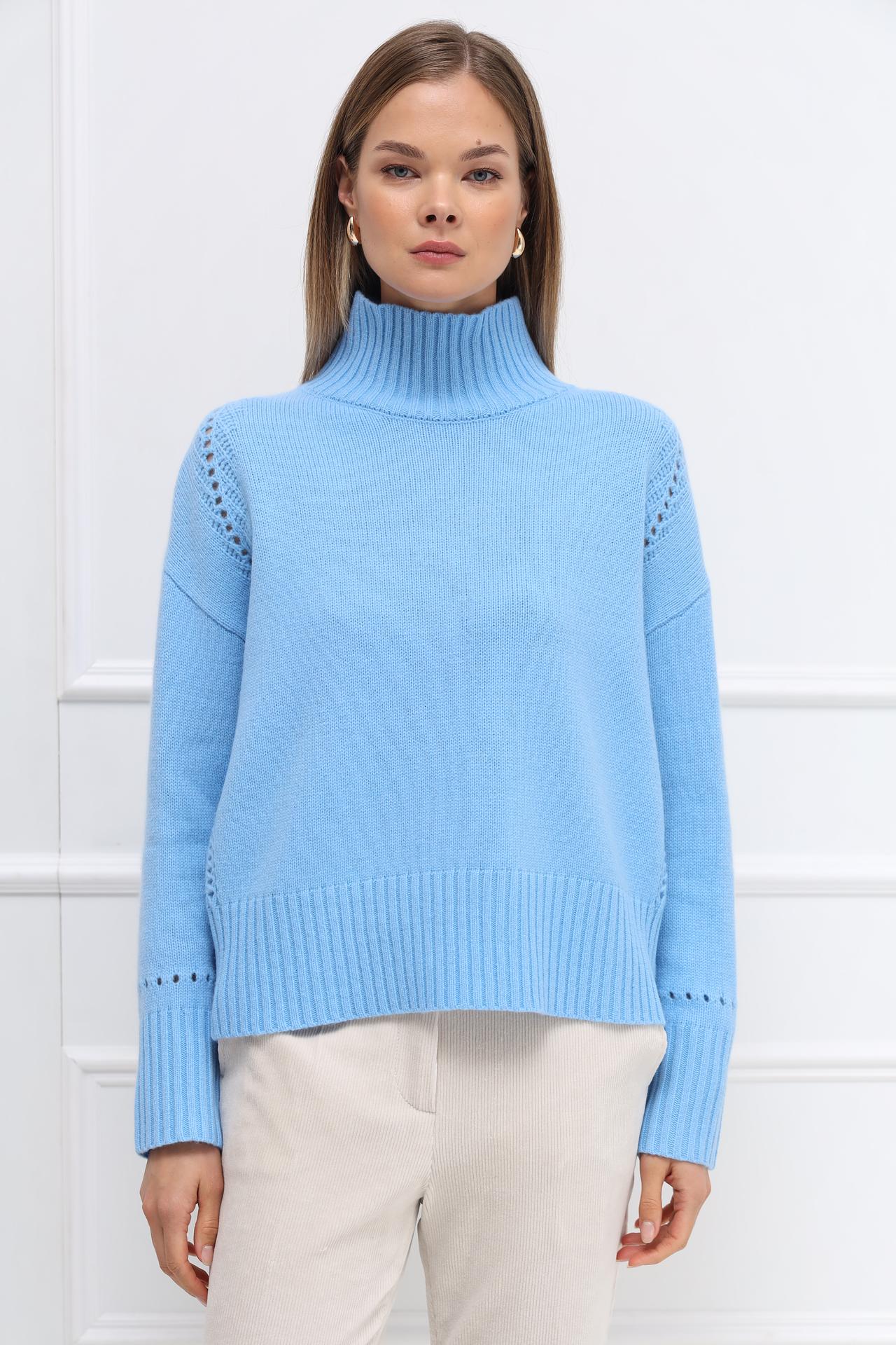 Пуловер Catnoir из 100% шерсти голубой с ажурными вставками