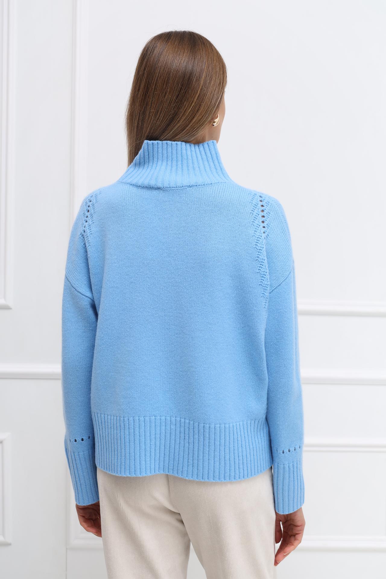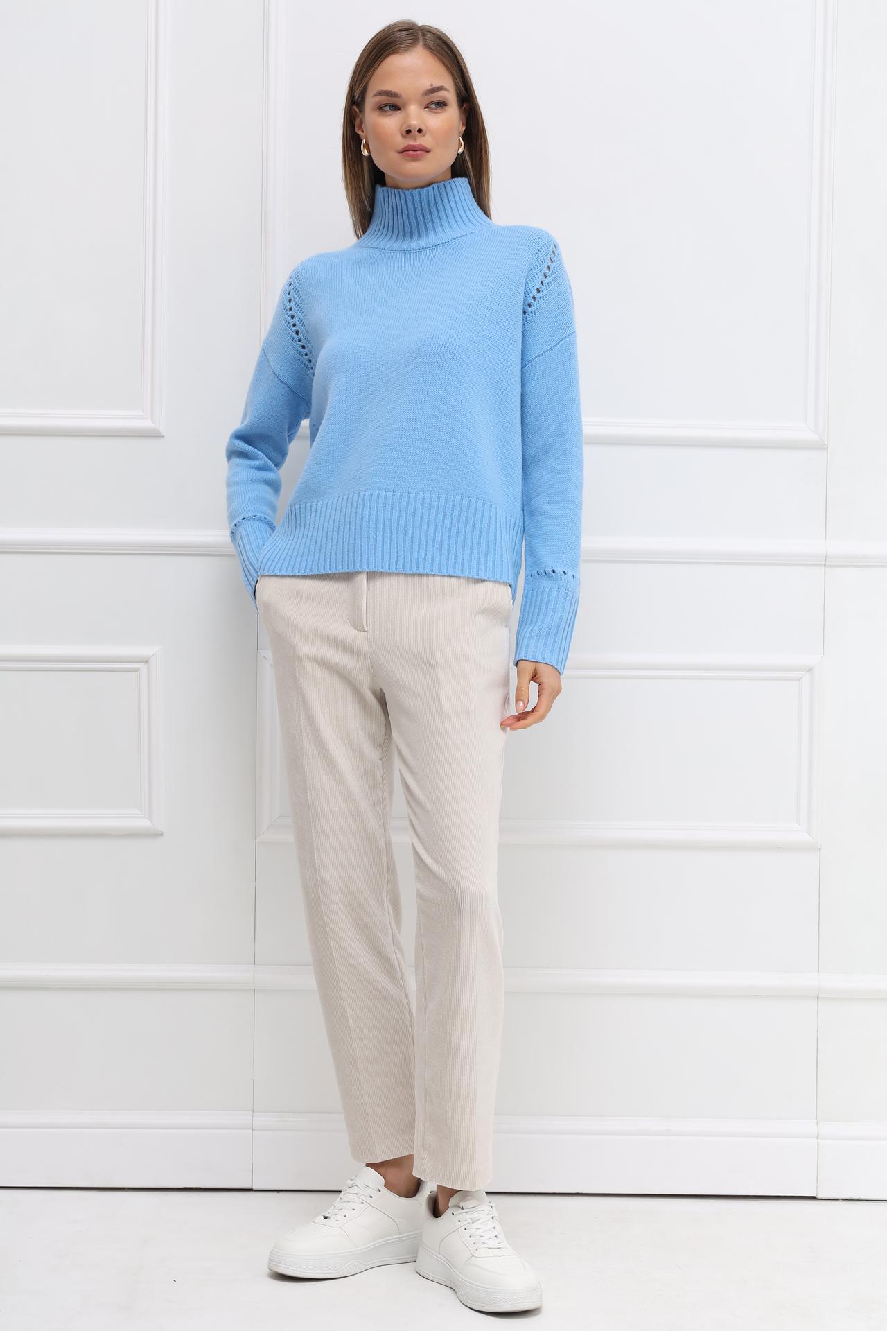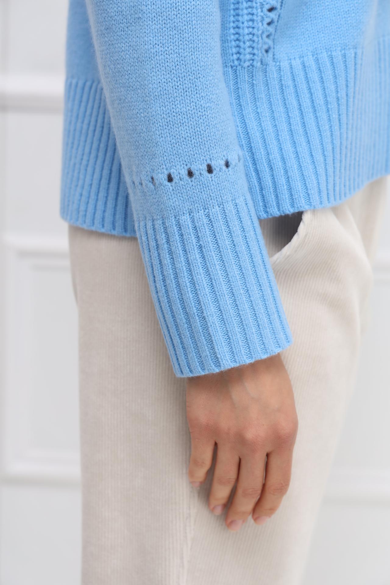 Пуловер Catnoir из 100% шерсти голубой с ажурными вставками