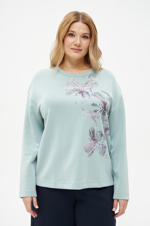 Мятный пуловер Gerry Weber EDITION с цветочным принтом – стильное и комфортное решение для повседневного образа. Изготовлен из мягкого модала с добавлением полиэстера и эластана, обеспечивающих приятные тактильные ощущения и хорошую посадку. Состав: модал 48%, полиэстер 47%, эластан 5%