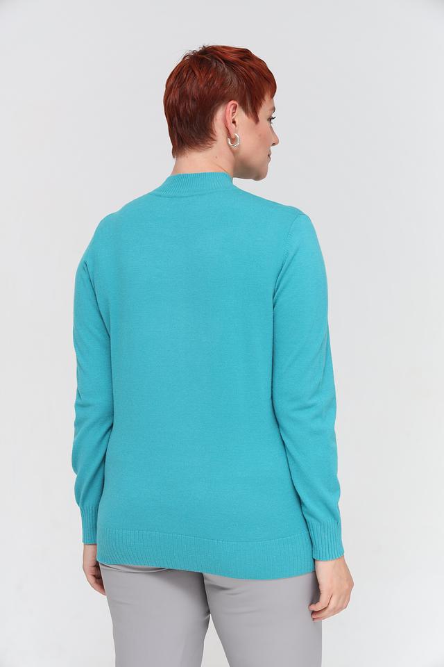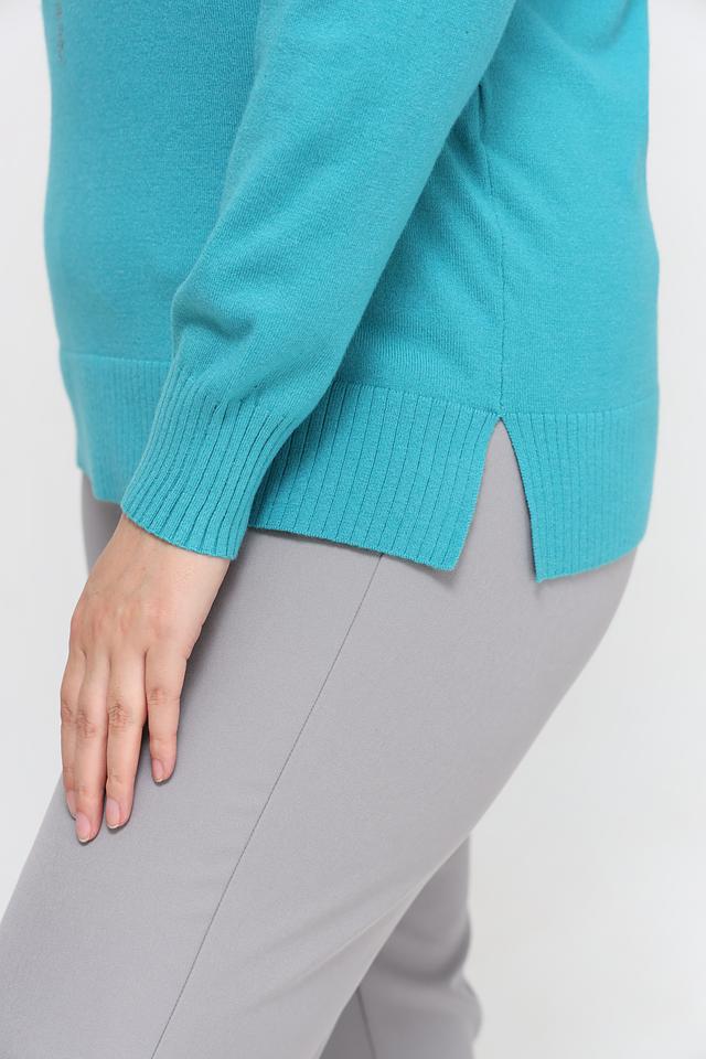 Бирюзовый цвет пуловера освежает образ и легко сочетается с другими элементами гардероба. Этот пуловер идеально подойдет для создания как повседневных, так и более нарядных образов. Он прекрасно сочетается с брюками, юбками и джинсами.