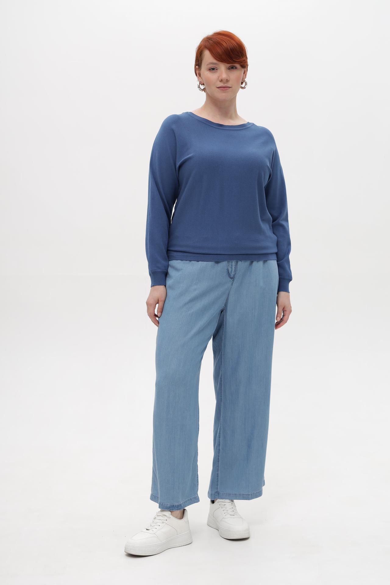 - Универсальность. Синий цвет пуловера легко сочетается с различными элементами гардероба, позволяя создавать как повседневные, так и более нарядные образы.