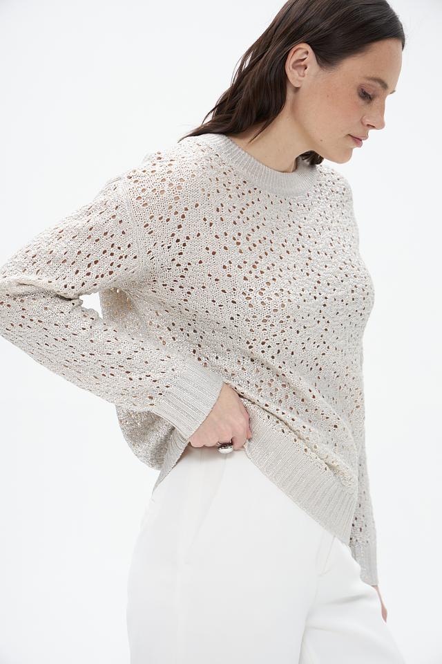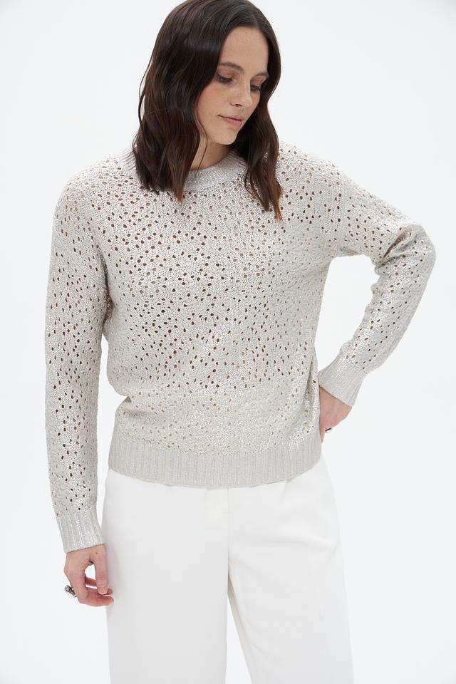 Бежевый пуловер от Lecomte из хлопка и полиакрила с ажурным узором. Модель имеет круглый вырез и длинные рукава, идеально подходит для создания повседневных образов. Состав: хлопок 60%, полиакрил 40%