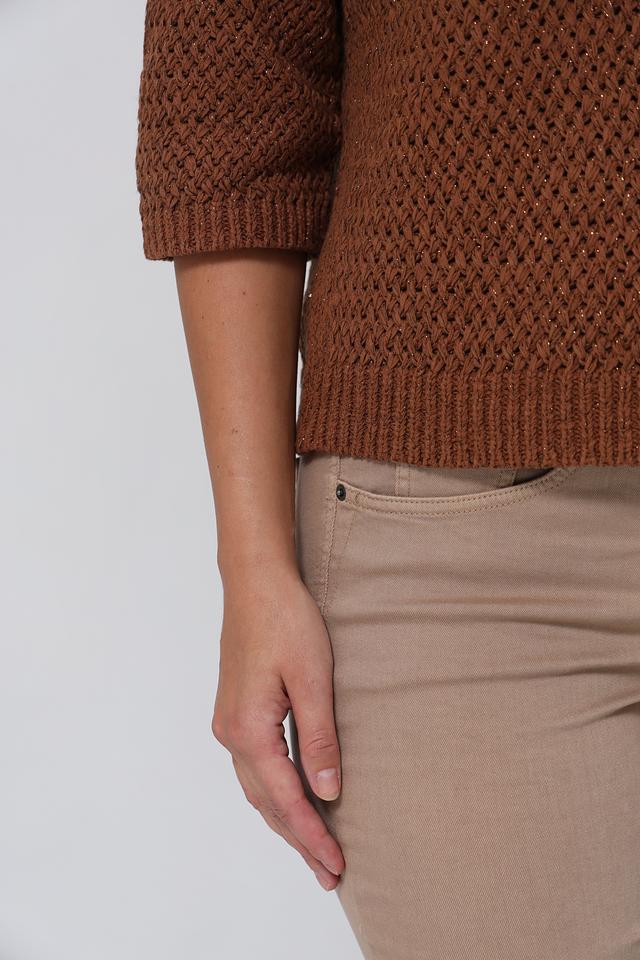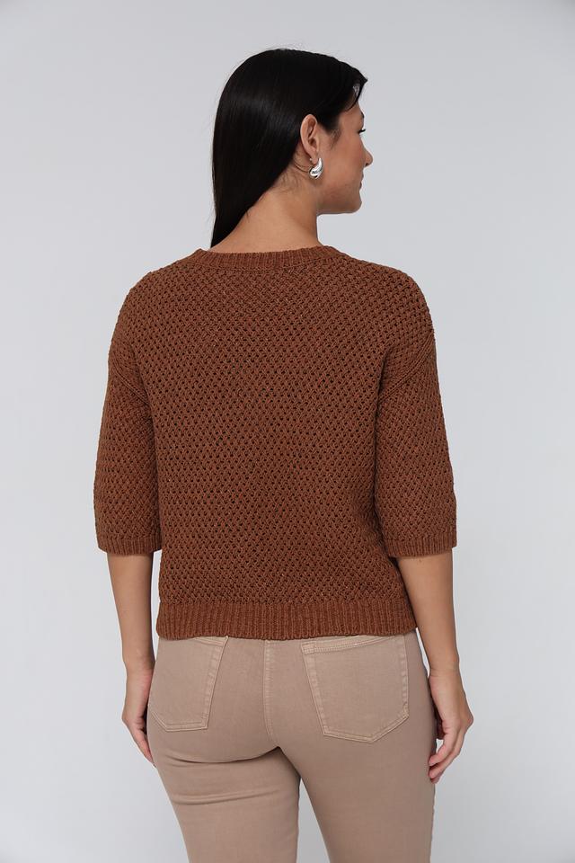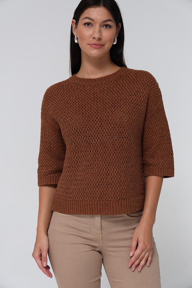 Коричневый пуловер Lecomte с ажурной вязкой и рукавами 3/4 станет отличным дополнением к вашему гардеробу. Модель выполнена из мягкого хлопка с добавлением полиамида и сизаля, что обеспечивает комфорт и износостойкость. Состав: хлопок 68%, полиамид 31%, сизаль 1%