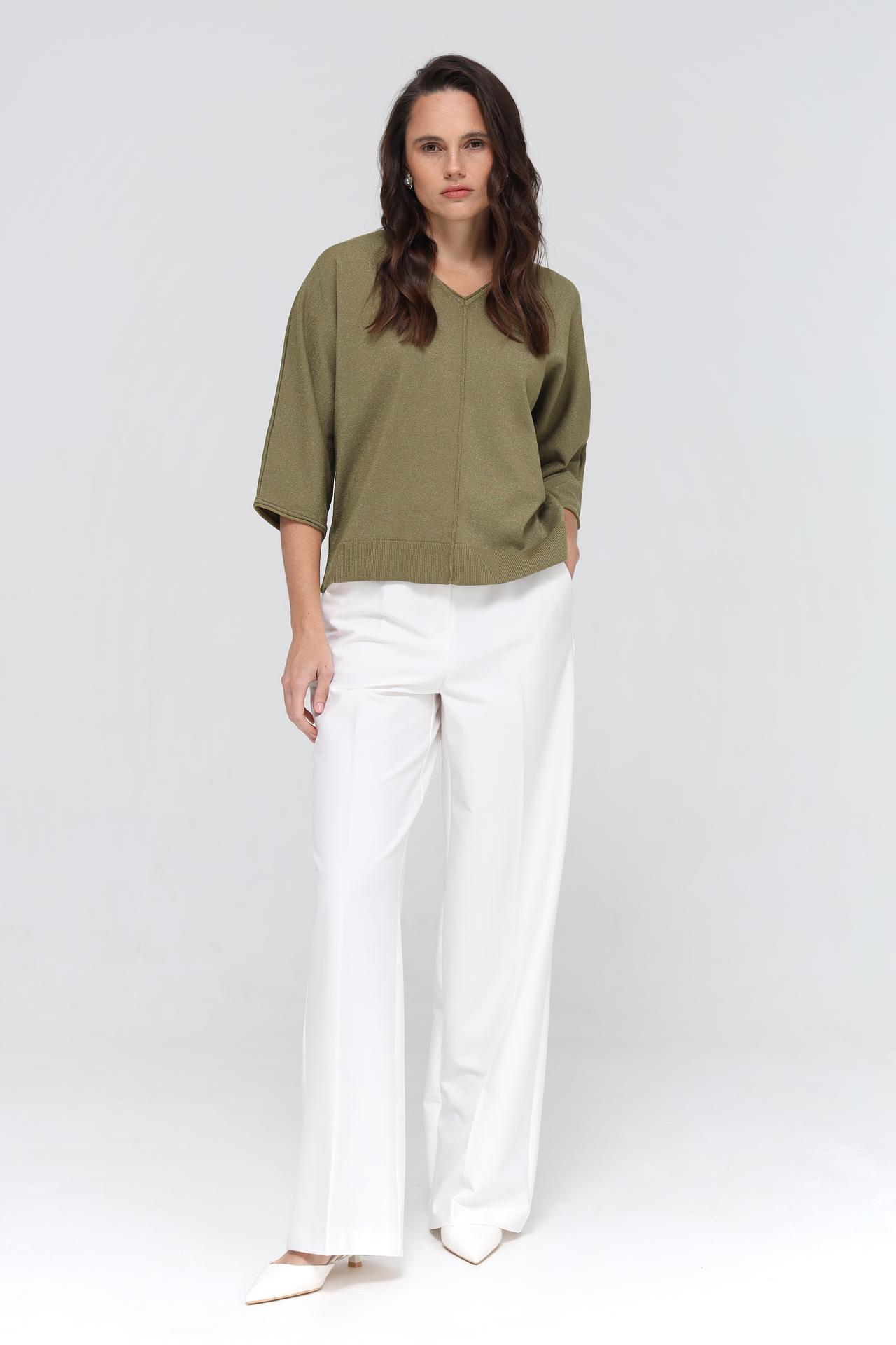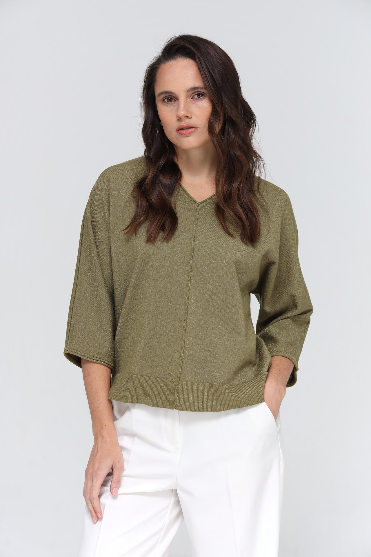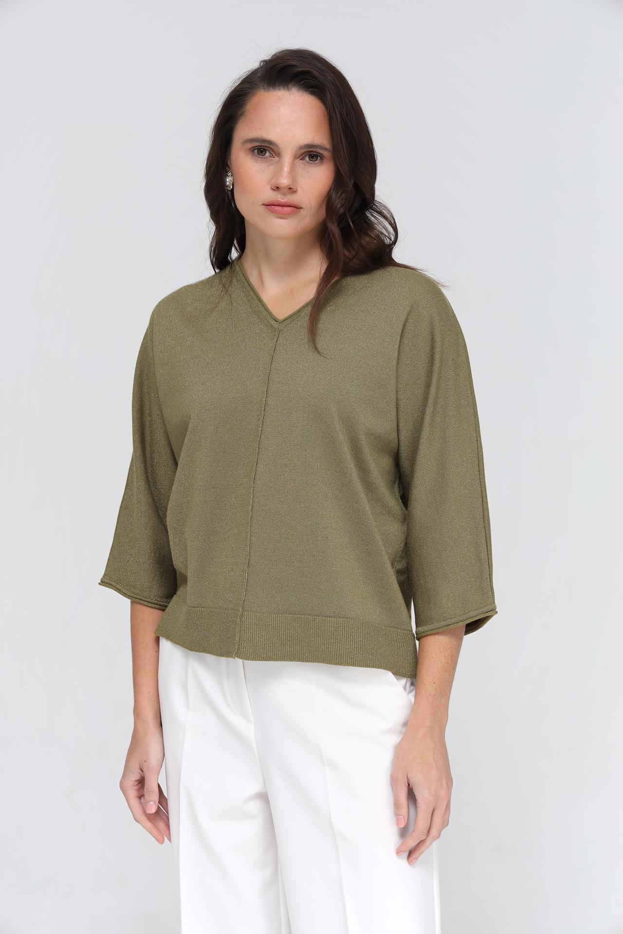Пуловер Lecomte оливковый с V-образным вырезом и рукавом 3/4