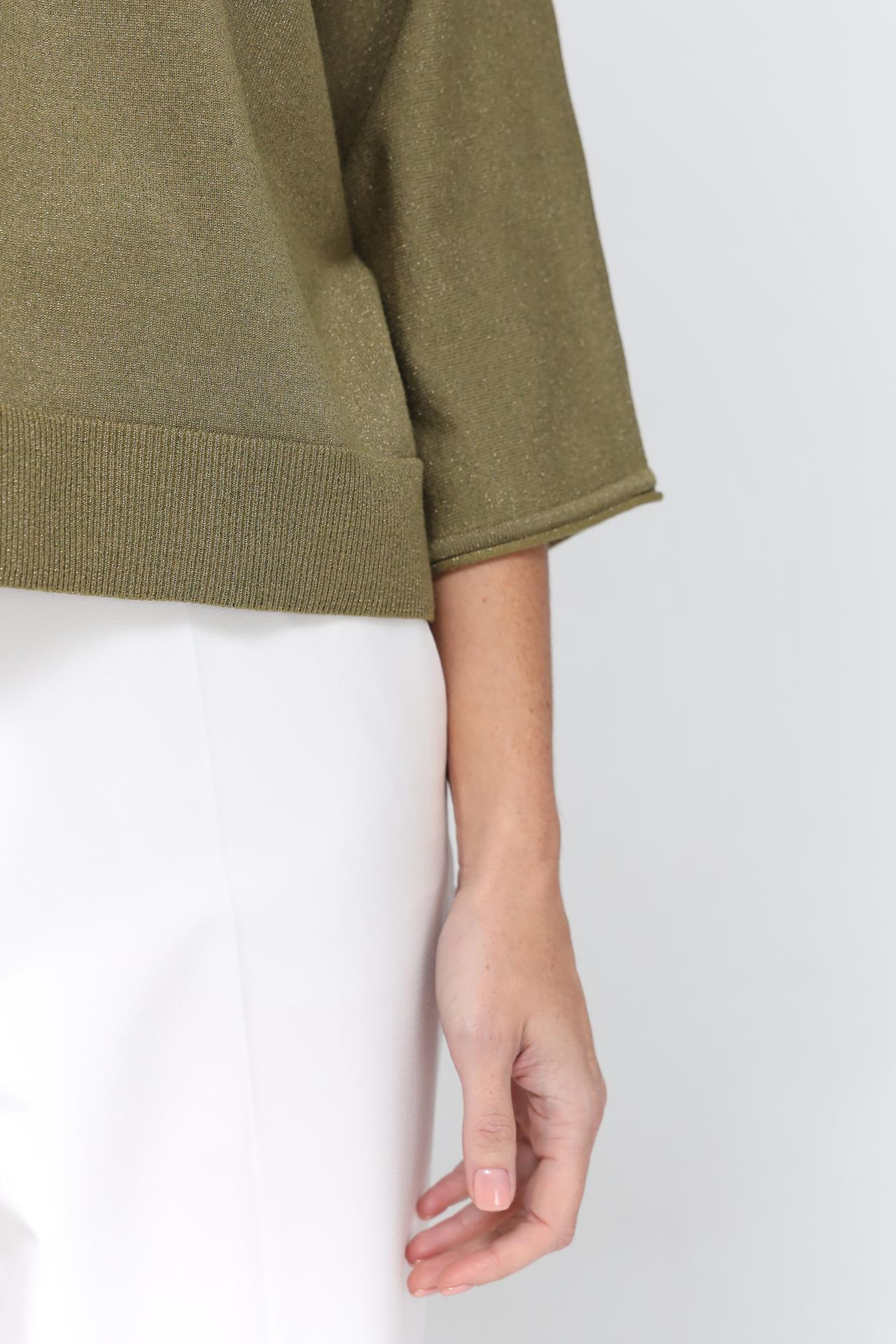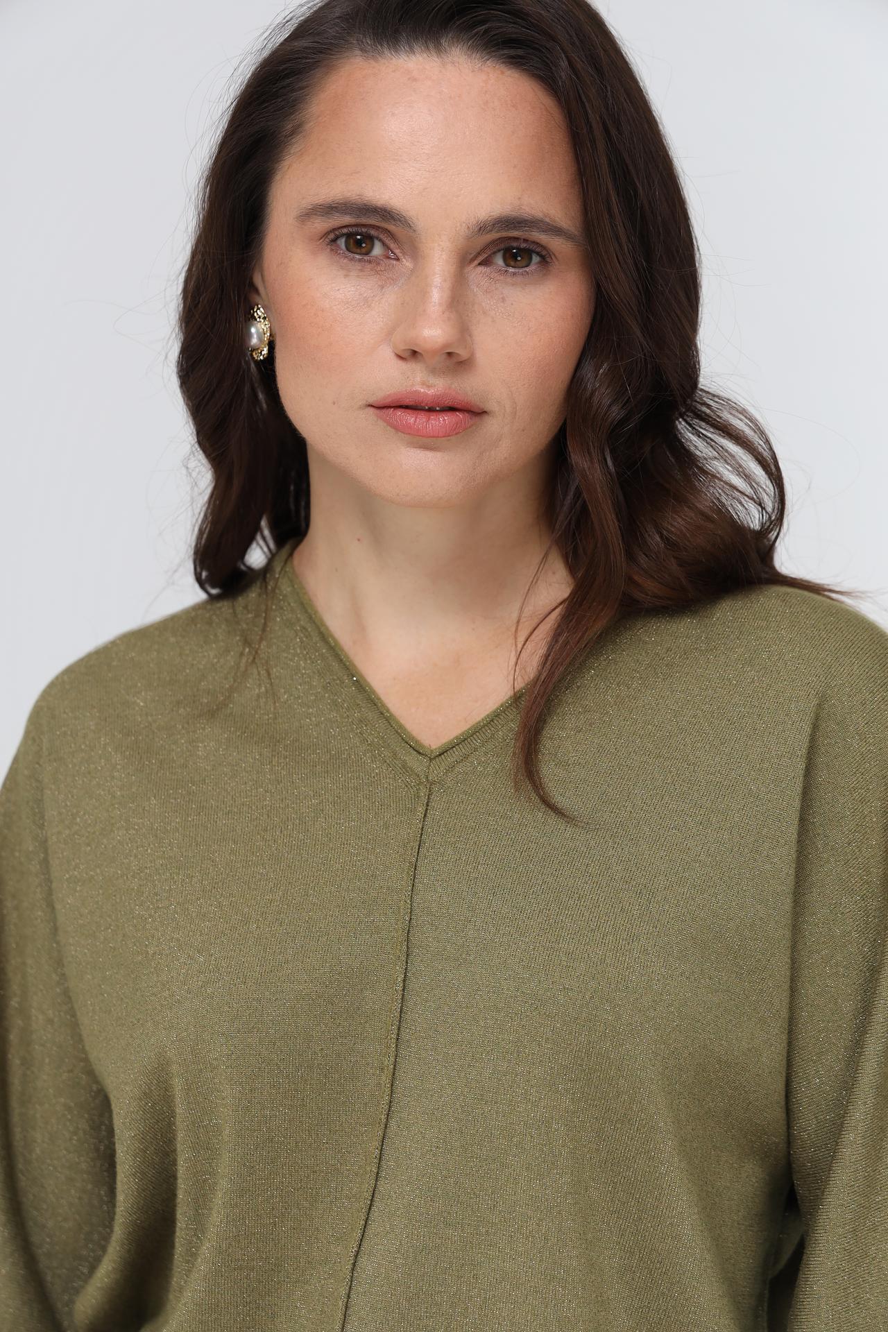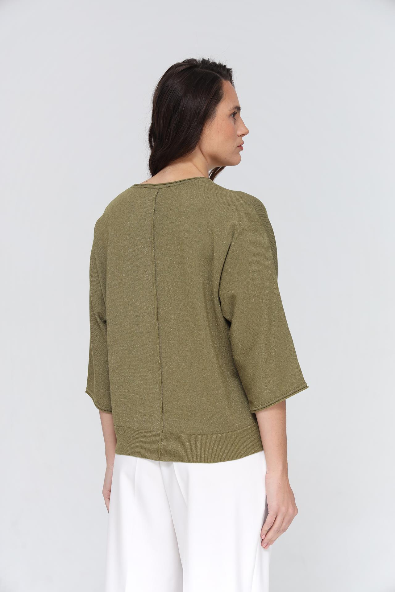 Пуловер Lecomte оливковый с V-образным вырезом и рукавом 3/4