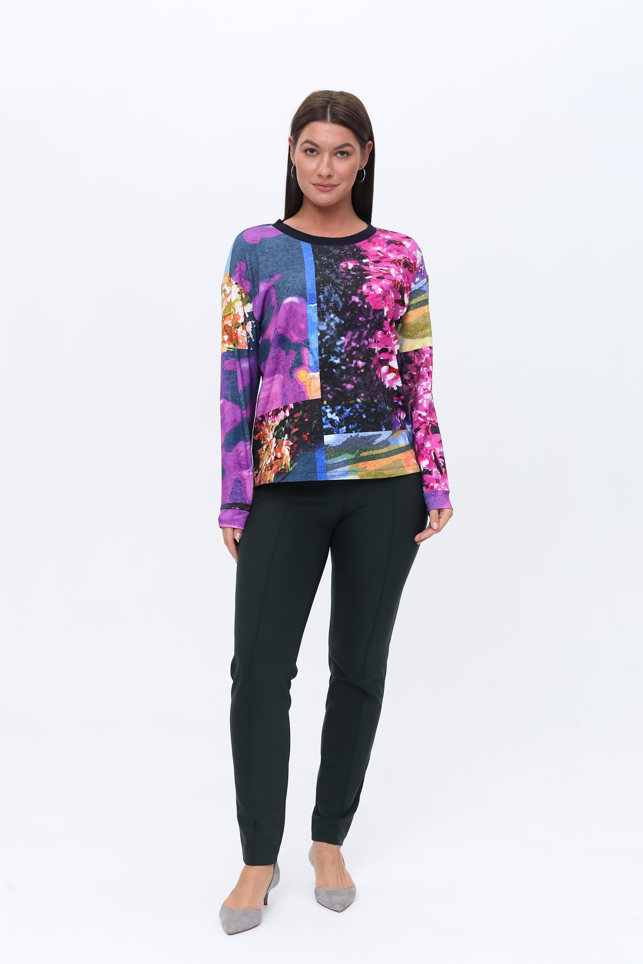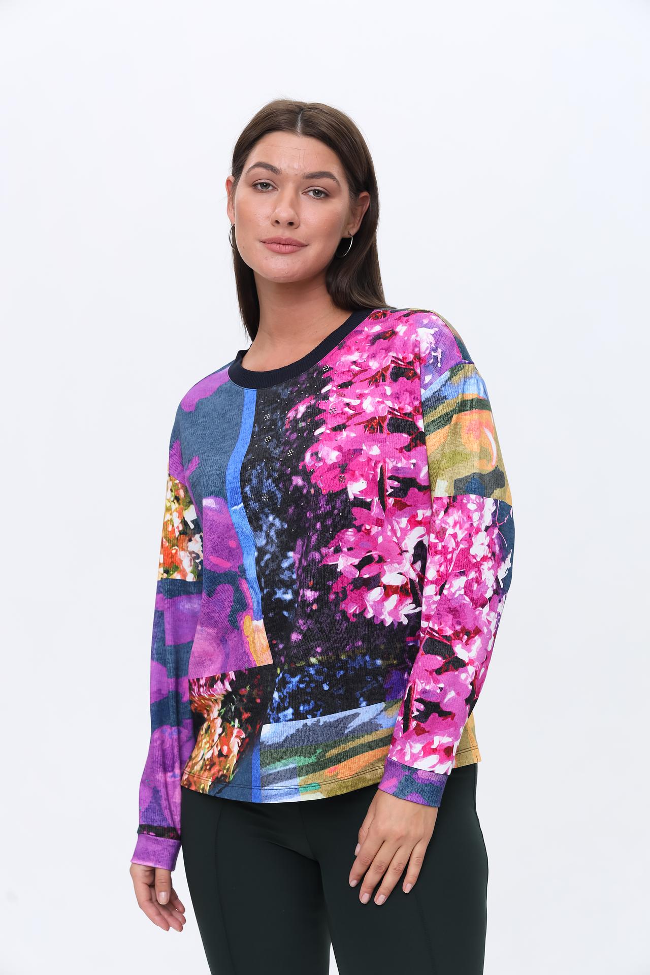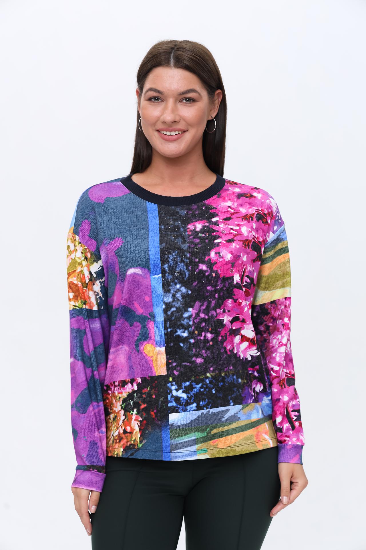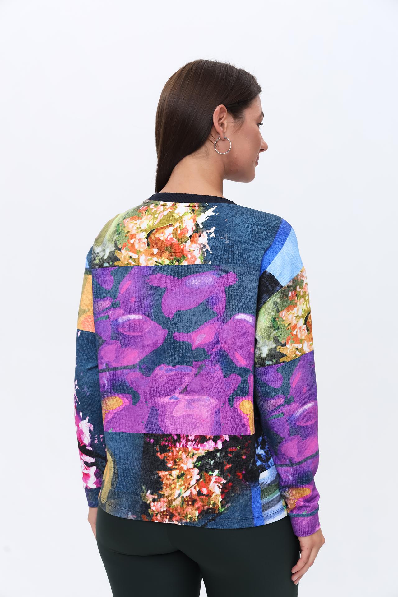Оригинальный дизайн с абстрактным цветочным принтом в ярких и насыщенных тонах сделает ваш лук неповторимым. Пуловер станет прекрасным дополнением к вашему гардеробу, как для повседневной носки, так и для особых случаев. Свободный крой обеспечивает удобство и комфорт в течение всего дня.