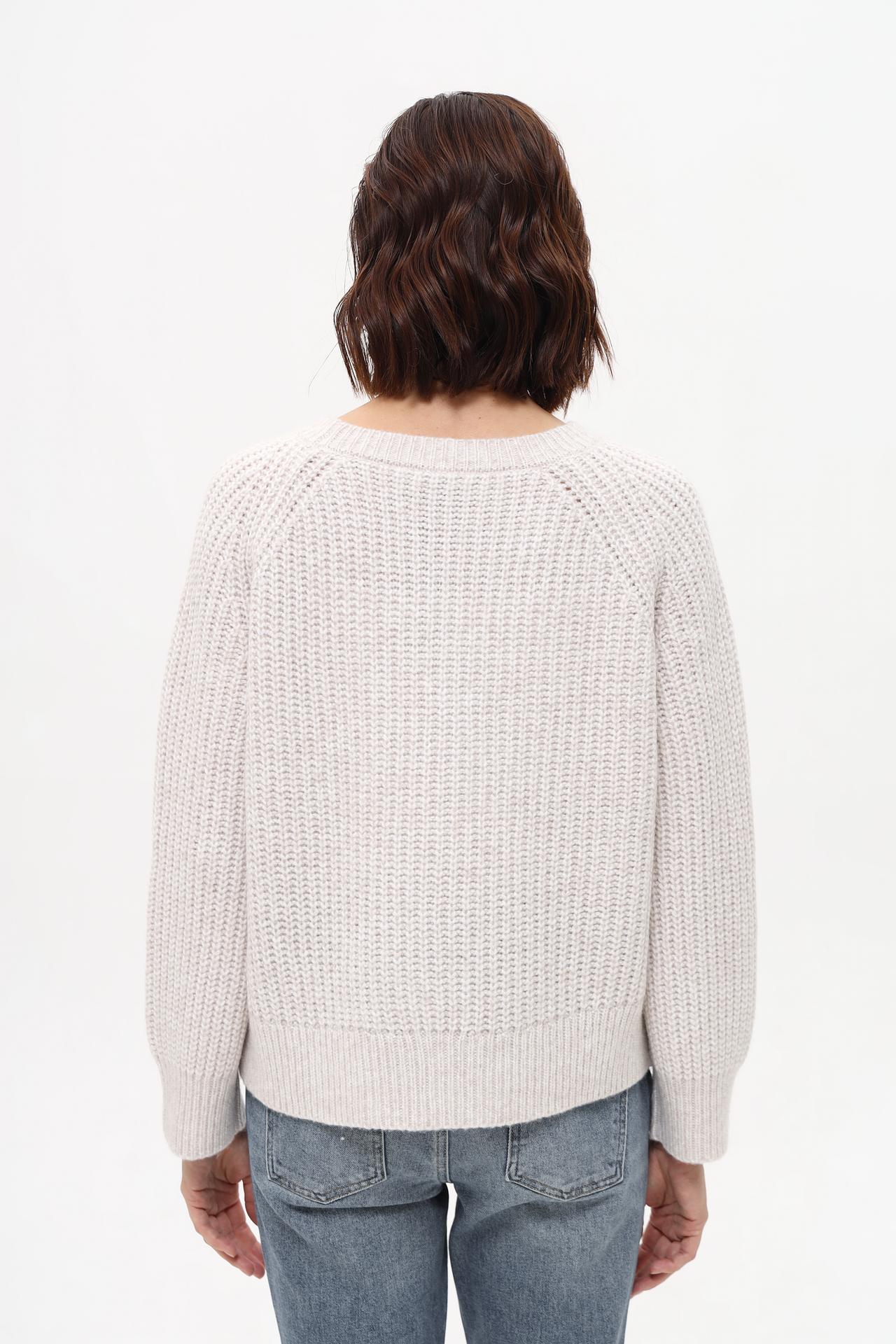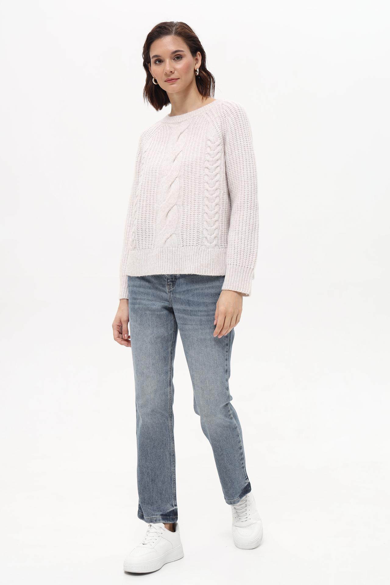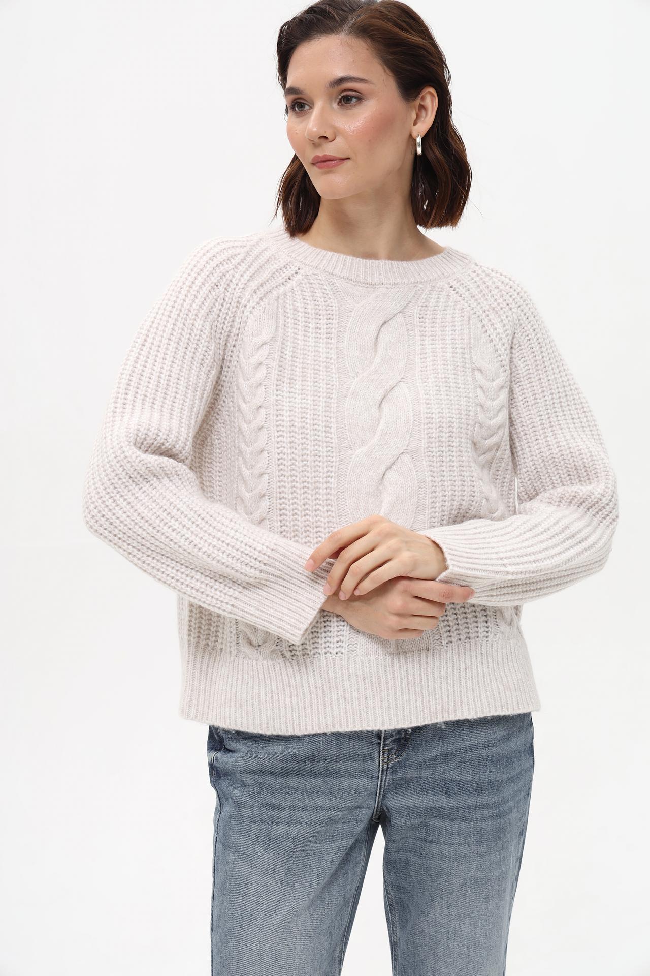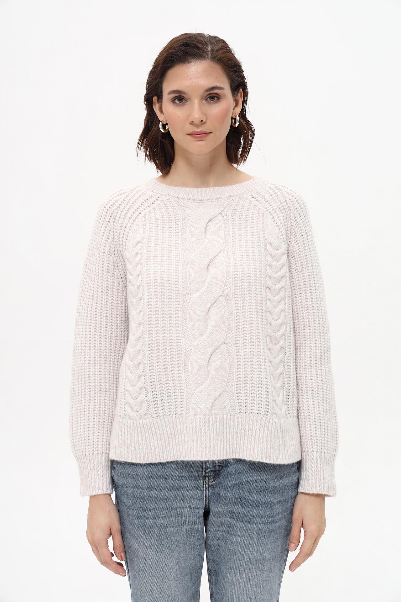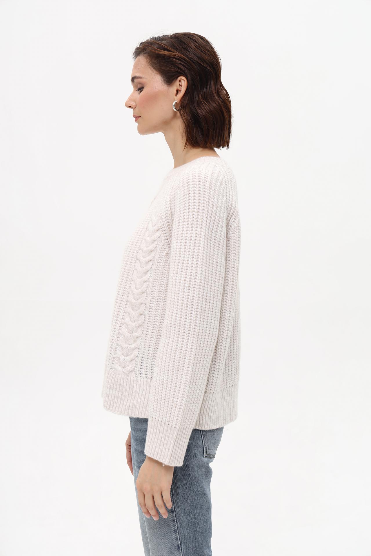 Выразительная вязка с косами добавляет текстуру и акцент, делая этот пуловер незаменимым элементом гардероба для создания уютных и модных образов. Он идеально подойдет для прохладных дней.