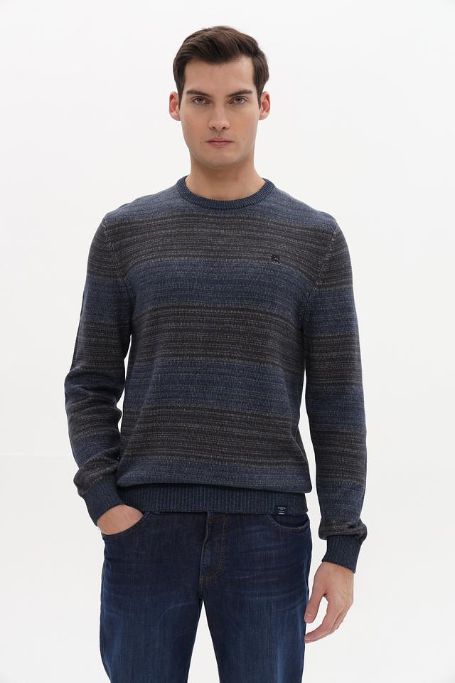 Представляем вашему вниманию мужской джемпер от бренда Lerros. Эта модель выполнена в приятной цветовой гамме синего меланжа, что придает ей современный и стильный вид.