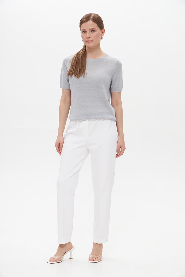 Модель имеет прямой крой и короткие рукава, что придает ей современный и лаконичный вид. Вырез горловины – округлый, классический. Внизу пуловер имеет резинку, которая обеспечивает аккуратную посадку по фигуре.