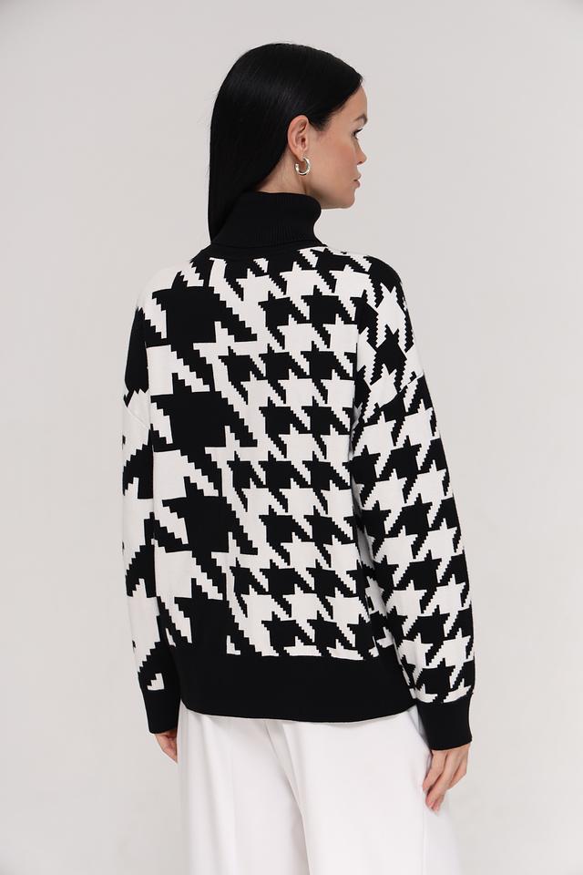 Стильный пуловер Marc Aurel чёрно-белого цвета с геометрическим принтом "гусиная лапка". Изготовлен из мягкой и приятной к телу смеси вискозы, полиэстера и полиамида. Состав: вискоза 50%, полиэстер 28%, полиамид 22%
