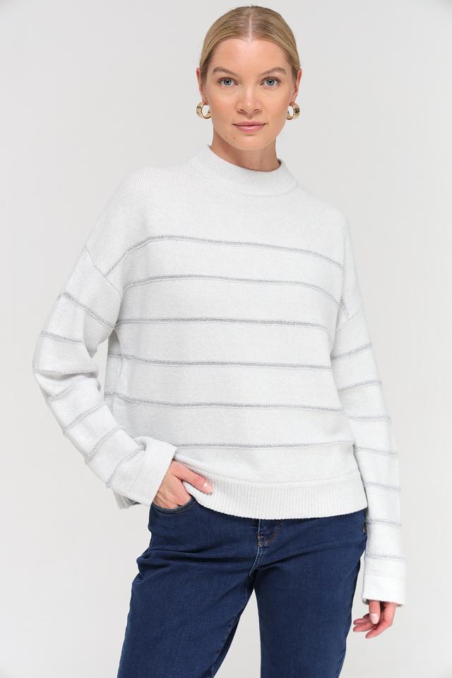 Модель имеет свободный крой и круглый вырез горловины, что обеспечивает комфортную посадку по фигуре. Пуловер изготовлен из высококачественного трикотажа, в состав которого входит полиакрил, полиамид, полиэстер, шерсть и эластан. Благодаря этому сочетанию материалов, пуловер приятен к телу, хорошо держит форму и не требует особого ухода.