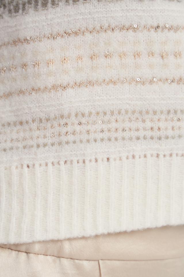 Стильный пуловер Marc Cain кремового цвета с полосатым узором. Изготовлен из высококачественной шерсти, полиамида, вискозы и кашемира для максимального комфорта и тепла. Состав: шерсть 47%, полиамид 29%, вискоза 11%, кашемир 8%, полиэстер 3%, эластан 1%, металлизир. волокно 1%