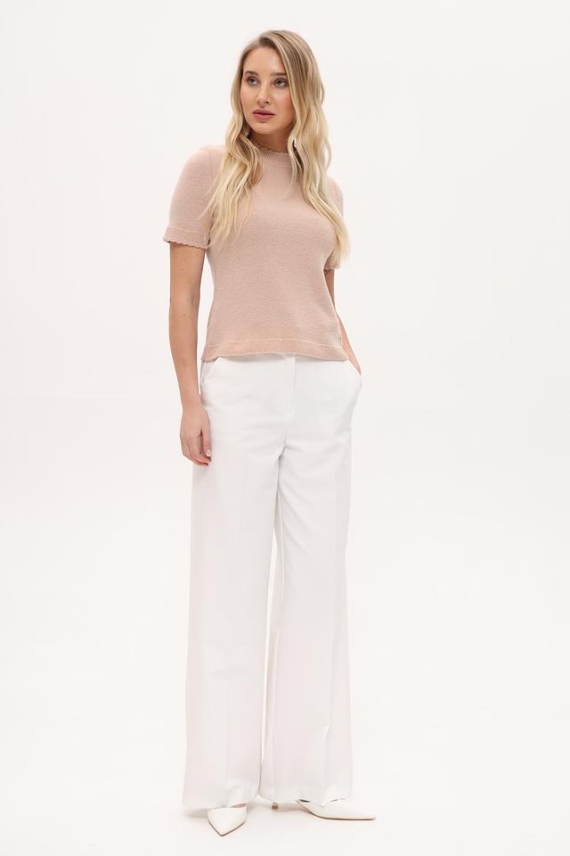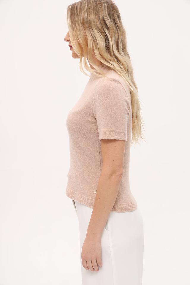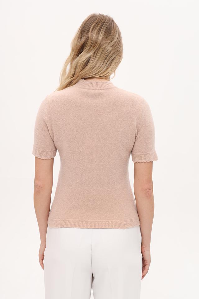 Бежевый пуловер от Marc Cain с короткими рукавами и воротником-стойкой. Изготовлен из премиальной смеси шерсти, полиамида, кашемира и эластана, обеспечивающей комфорт и изысканный внешний вид. Состав: шерсть 63%, полиамид 25%, кашемир 10%, эластан 2%